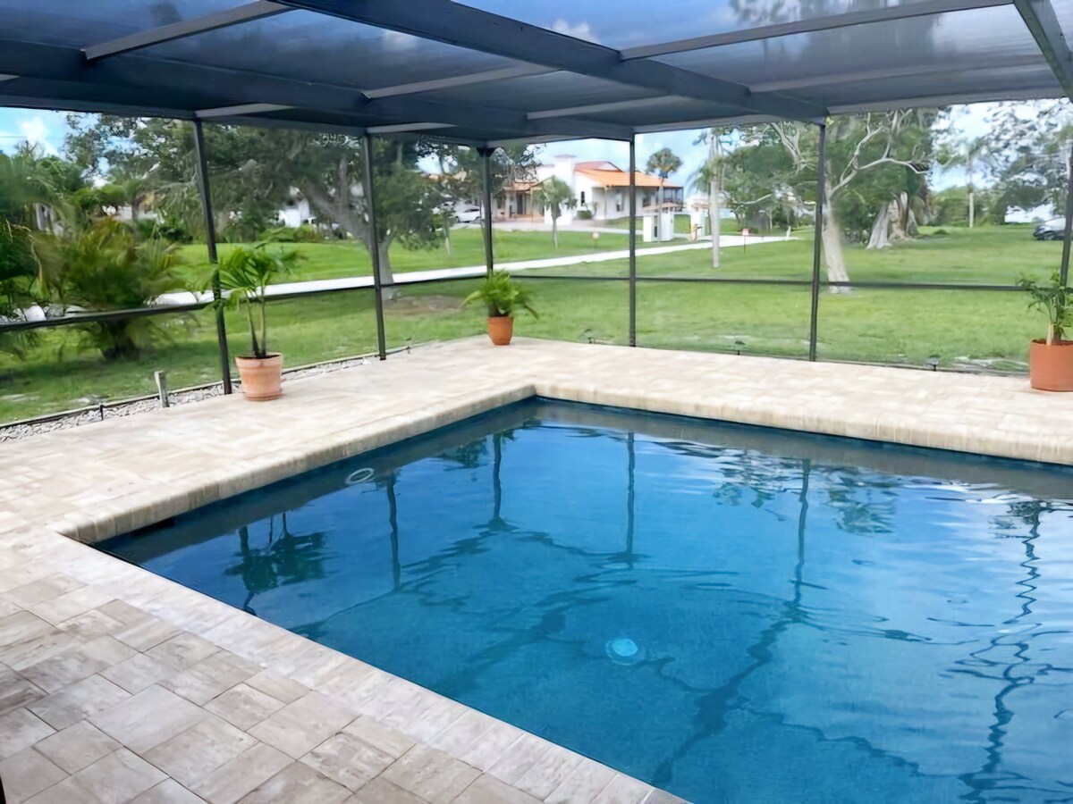 Cuir do chosa agus d'anam ar do shuaimhneas! Tá an píosa beag sómasach parthais seo suite ar uiscebhealach ciúin ar Chósta na Murascaille. 10 nóiméad ó Englewood Beach agus 5 nóiméad ó shiopaí. Ceangail do bhád suas sa chlós cúil chuig an duga príobháideach 100 troigh. Caith do laethanta ag iascaireacht, ag breith ar luí na gréine nó sa linn snámha gach tráthnóna! Rochtain éasca ar Don Pedro Island, barraí gainimh áitiúla, ionraon agus roinnt bialanna, agus iad ar fad ar do mhéaracha! Pacáil do mhálaí, ciceáil siar - tá parthas ag fanacht!