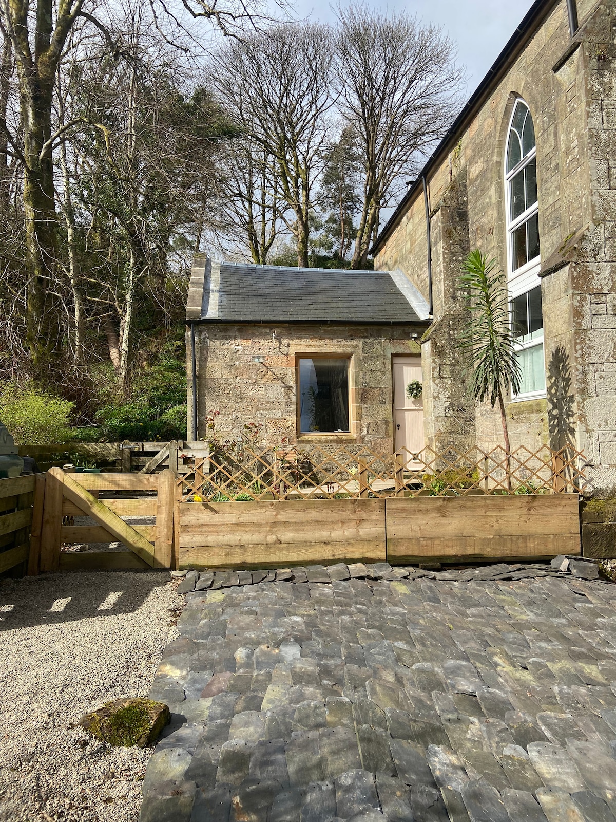 Tá Teachín na nGairdíní suite laistigh de ghairdíní daingean Theach Corvisel, a thóg Rear Admiral John McKerlie in 1829. Tá an teachín athchóirithe againn i stíl seanré, quirky le feistis bhoga agus maisiúcháin bhreacánacha agus maisiúcháin bhláthacha curtha ar ais againn chun an gairdín glórmhar a léiriú taobh amuigh! Tá sé suite ag imeall Newton Stewart agus mar sin tá sé an - áisiúil le haghaidh spaisteoireacht tráthnóna chuig na bialanna sa bhaile. Is féidir leat siúlóidí a dhéanamh inár bhforaois bheag ón gclós & crochadh thart sa ghairdín daingean - cuirtear fáilte roimh mhéara glasa!!