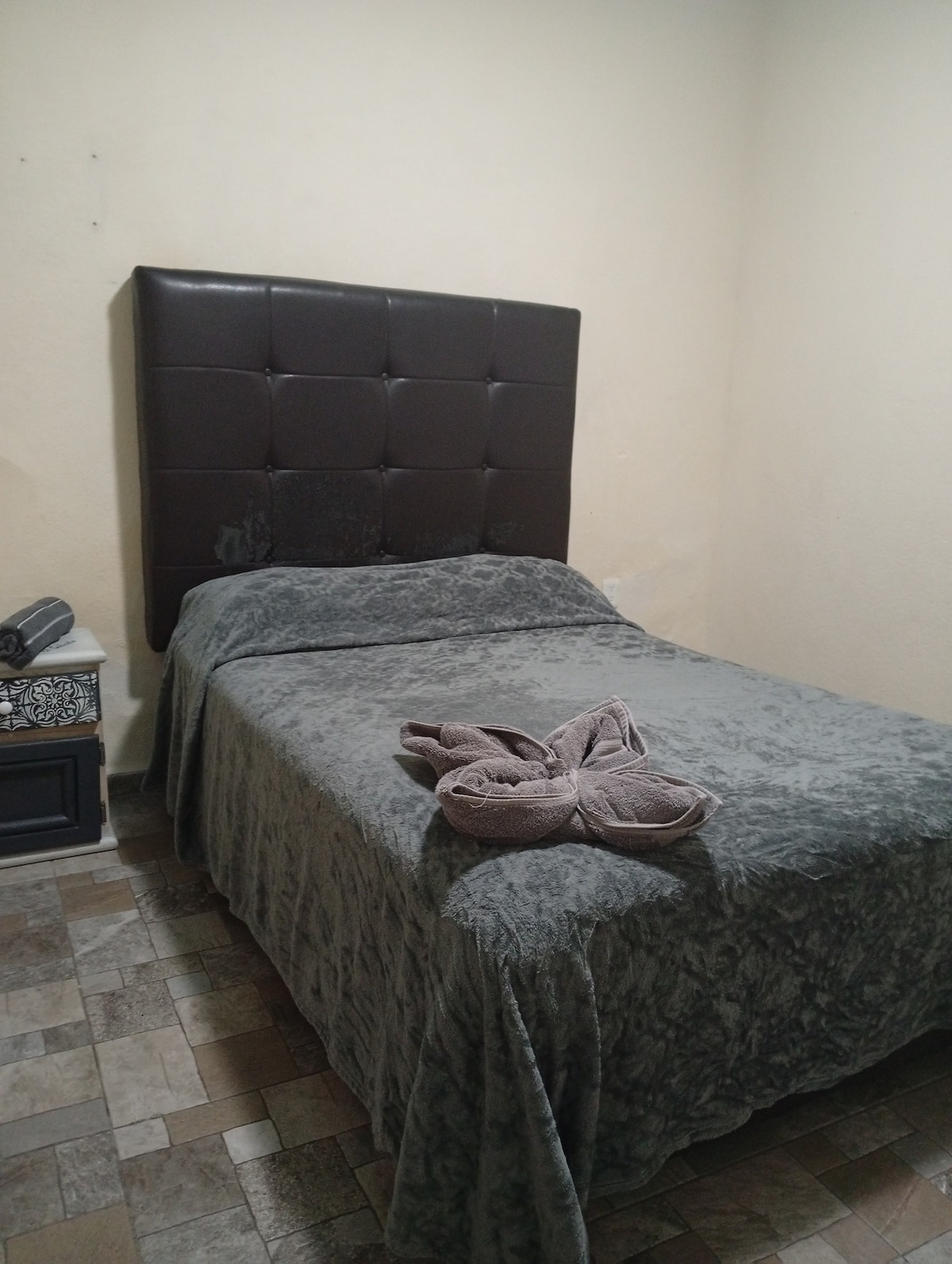 Habitación básica con cama matrimonial para huéspedes en lugar seguro, cerrado, con acceso a internet de alta velocidad. Estacionamiento dentro de la propiedad. Nos encontramos a 10 minutos del aeropuerto internacional del bajío a las afueras de la ciudad de Léon.