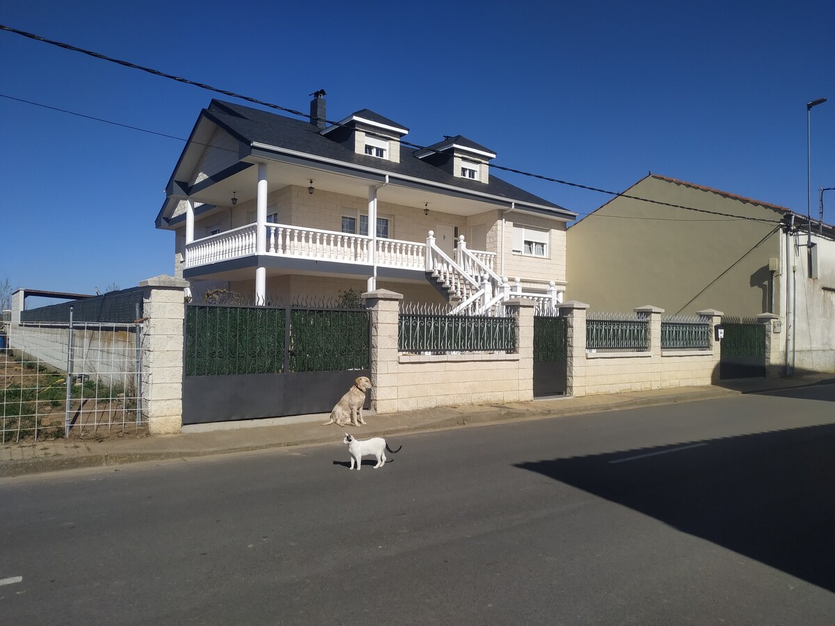 Bailímid na hoilithrigh saor in aisce ag Mansilla de las Mulas 6 km ónár dteach. seomra leapa le seomra folctha, fuinneog ghairdín, vardrús mór Tá cistin le téamh / cócaireacht againn (trí áirithint). Tá seirbhís bialainne againn freisin (dinnéar, lón, bricfeasta). Gairdín 2000m2 le linn snámha shéasúrach srl