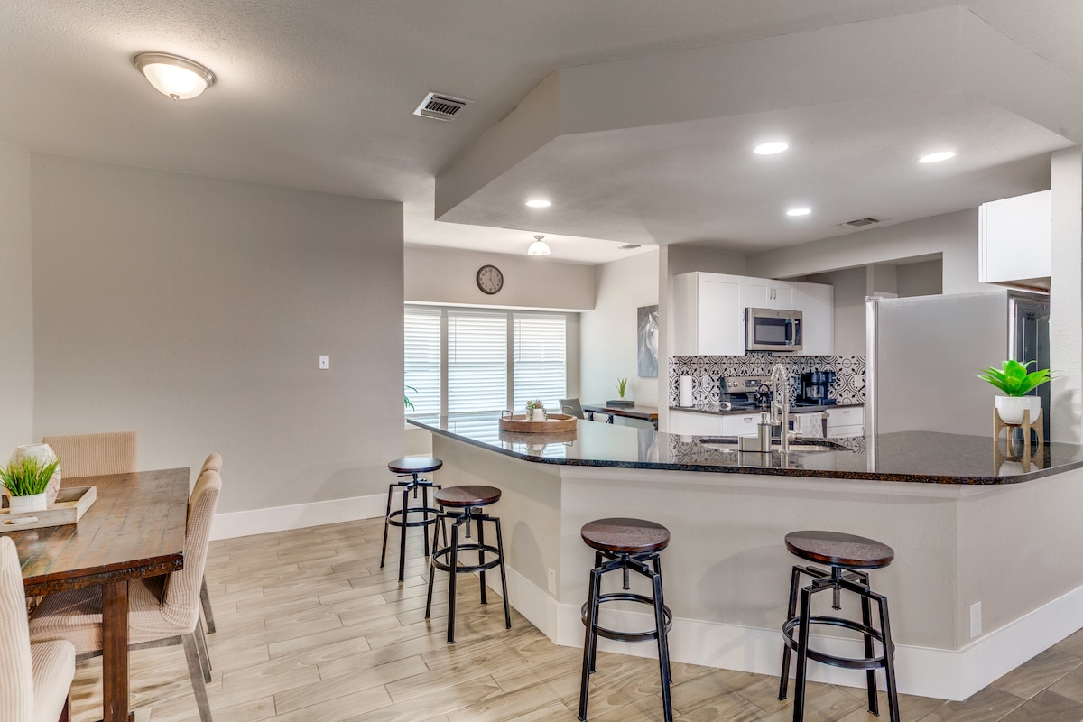 Fáilte go Casa Serenidad — tearmann suaimhneach atá deartha chun cabhrú leat moilliú agus do scíth a ligean. Tá an teach fairsing aon stór seo suite i gcomharsanacht chiúin in San Antonio agus cuireann sé meascán suaimhneach de chompord, de shimplíocht agus de dhearadh tuisceanach ar fáil. Cruthaíonn solas nádúrtha, spásanna maireachtála oscailte, agus timpeallacht shuaimhneach atmaisféar fáilteach inar féidir leat do scíth a ligean agus tú féin a athluchtú — agus é sin ar fad agus tú fós gar go háisiúil do na nithe is díol spéise is mó tóir in San Antonio.