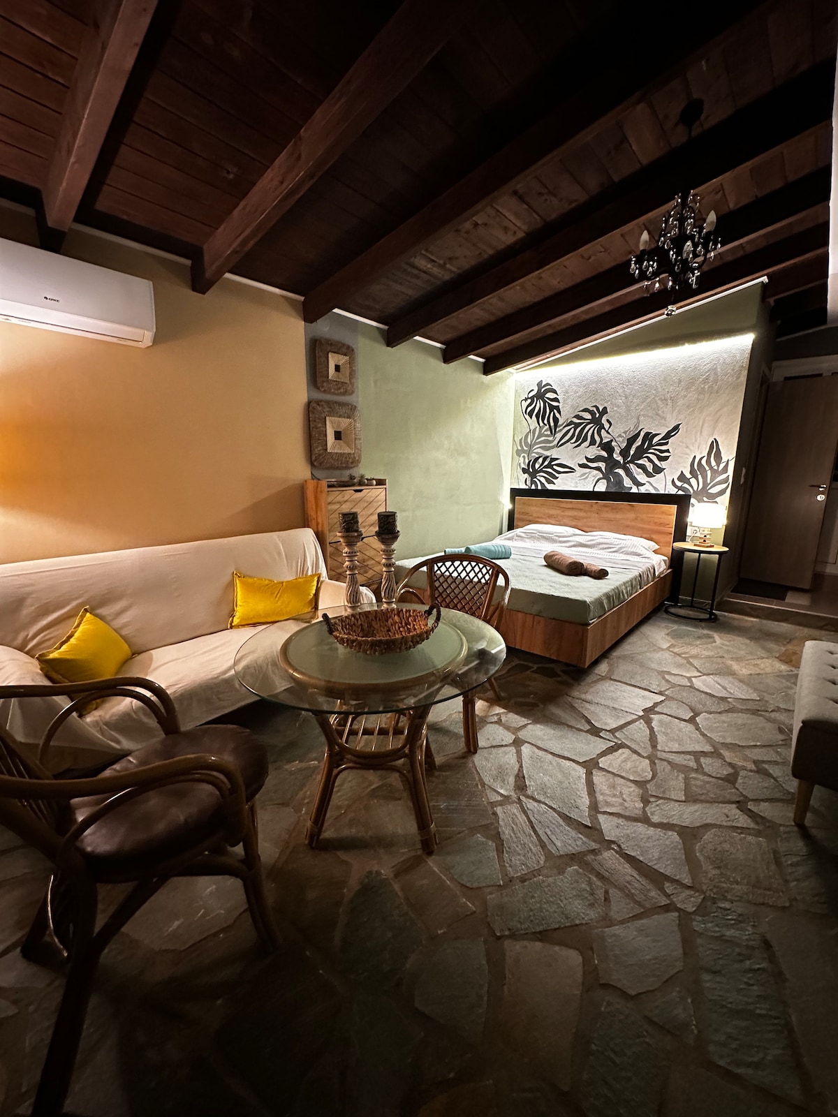 Éalaigh i stíl sa stiúideo teolaí tarraingteach seo i gcroílár na cathrach in aice le clárchosán Giannitsa. Rogha chliste d'fhiontraí chomh maith le lánúin óg nó do thaistealaí amháin. Tá sé timpeallaithe ná mar is féidir leat a shamhlú amhail beáir, bialanna, siopaí, i níos lú ná nóiméad siúil. Tá anáil oiriúnach do dhuine nó dhó. Tá aerchóiriú,Wi - Fi, earraí níocháin, cistin tí iomlán agus an trealamh le haghaidh sneaic nó caife ann.