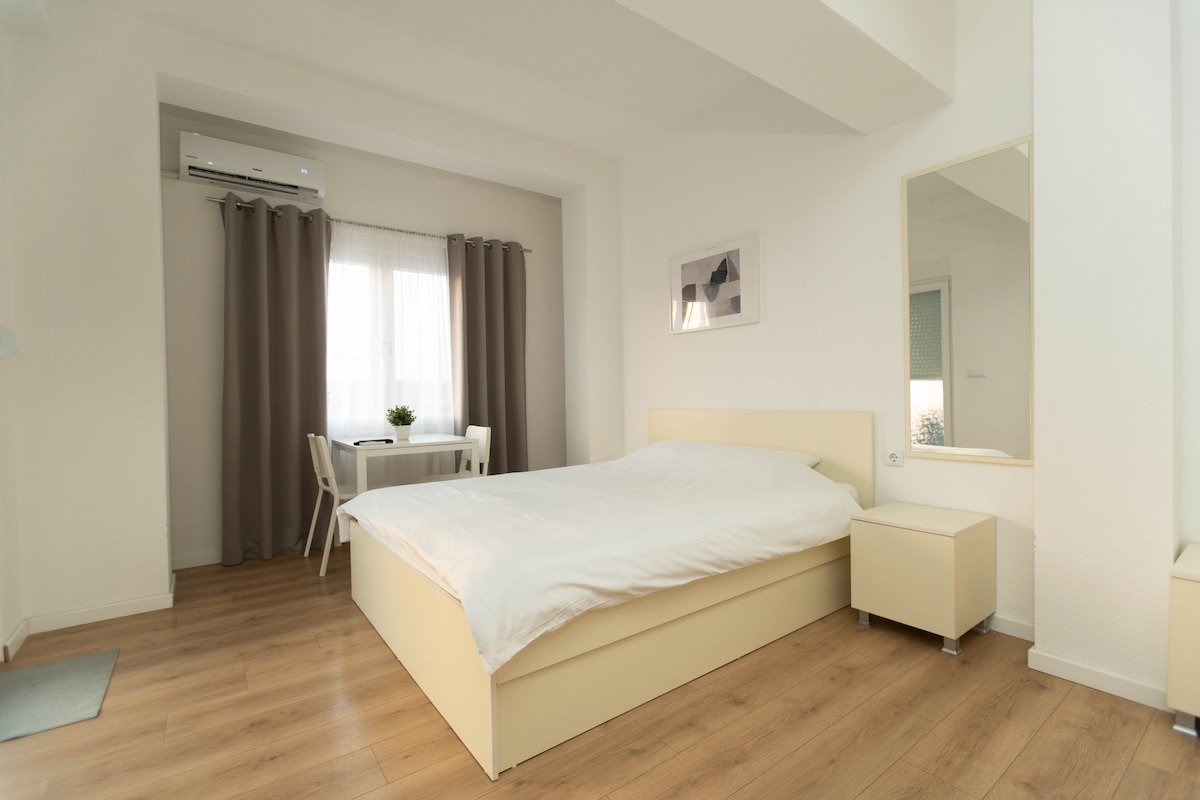 Árasán uathúil 1 Seomra Leapa lánfheistithe ar an seachtú hurlár i bhfoirgneamh athchóirithe 2020 ina bhfuil balcóin iontach ar an ardán. Tá idirlíon ardluais, saoráidí den scoth, leaba ar mhéid na banríona sómasach, agus do chuntas Netflix féin ach tá cúpla rud a chuirimid ar fáil duit. Lonrúil, fairsing, le gach rud a d'fhéadfadh a bheith ag teastáil uait chun taitneamh a bhaint as d'fhanacht i gcroílár shaol sóisialta Thessaloniki, gan ach 5 nóiméad ar shiúl ó chearnóg Aristotelous agus 2 nóiméad ó imeall na farraige. Fáilte agus bain sult as d'fhanacht!