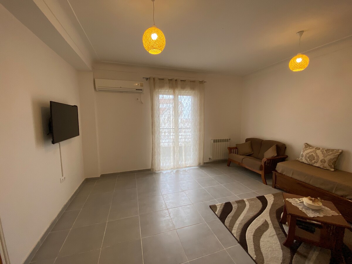Árasán F2 glan agus úrchóirithe, atá suite i gceantar cónaithe, ciúin agus slán i lár chathair Béjaïa, 10 nóiméad sa charr ón aerfort agus 5 nóiméad siúil ón stáisiún bus. Le radhairc iontacha ar an gcathair agus ar Shliabh Gouraya agus leis na saoráidí riachtanacha go léir chomh maith le siopaí áise, beidh an t - árasán seo foirfe le haghaidh fanacht taitneamhach compordach leis an teaghlach nó le haghaidh turas oibre.