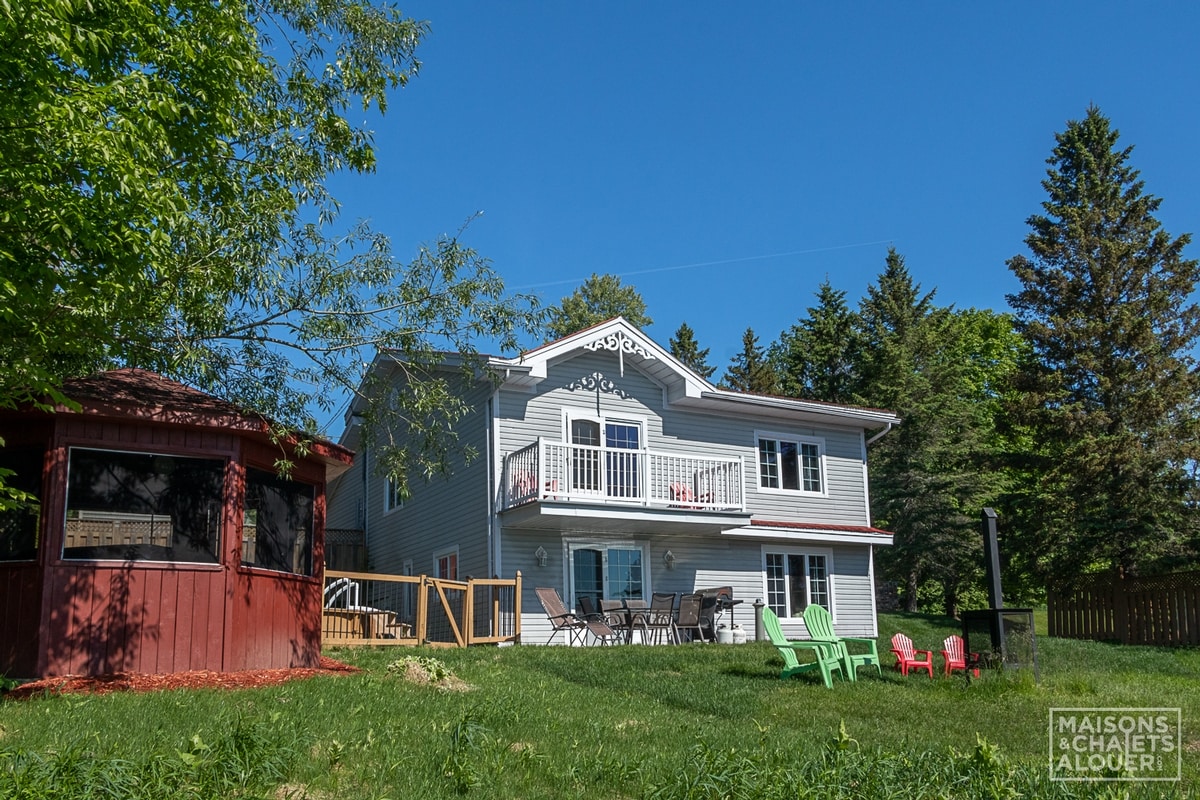 Sealla mór do 18 nduine, atá oiriúnach do theaghlaigh nó do ghrúpaí cairde. Ar phlota an - mhór talún timpeallaithe ag an dúlra, bain sult as an suaimhneas agus as na gníomhaíochtaí lasmuigh. - Linn snámha théite agus poll dóiteáin lasmuigh (samhradh). - 4 phéire sneachta san áireamh, 22km de chosáin snowshoe agus teallach chun téamh suas (geimhreadh). - Maisiúchán draíochta le linn pléasctha na ndathanna (an fómhar). Tá an chistin feistithe go maith chun cócaireacht a dhéanamh agus gach duine a thabhairt le chéile le haghaidh béile maith. 20 nóiméad ó Magog - Orford & Sherbrooke.