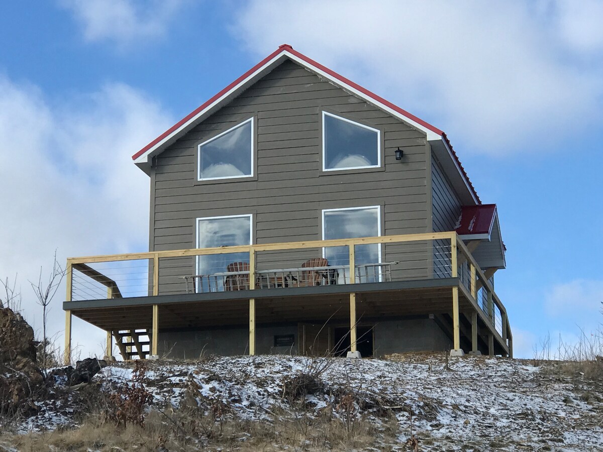 Radharc ar chábán logála nua - aimseartha w/ sliabh