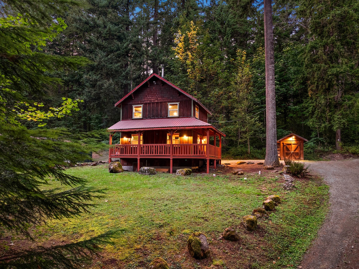 Tá na sléibhte ag glaoch! Éalaigh go Wit's End Retreat. Cóngarach do Elbe, 92 Road, Alder Lake, agus gan ach 11 nóiméad go Mt. Rainier National Park. Tá gach ceann de na compord créatúir sa bhaile le feiceáil sa chábán athmhúnlaithe seo ach tá sé suite i suíomh ciúin, síochánta. Tá tobán te nua clúdaithe, cistin iomlán, Wi - Fi, meaisín níocháin/triomadóir, teilifíseán cliste, suíocháin lasmuigh clúdaithe, poll dóiteáin, agus eile le feiceáil sa réadmhaoin. Is é Wit's End Retreat an áit is fearr chun iniúchadh a dhéanamh ar an PNW nó chun fanacht ann, do scíth a ligean agus do scíth a ligean.