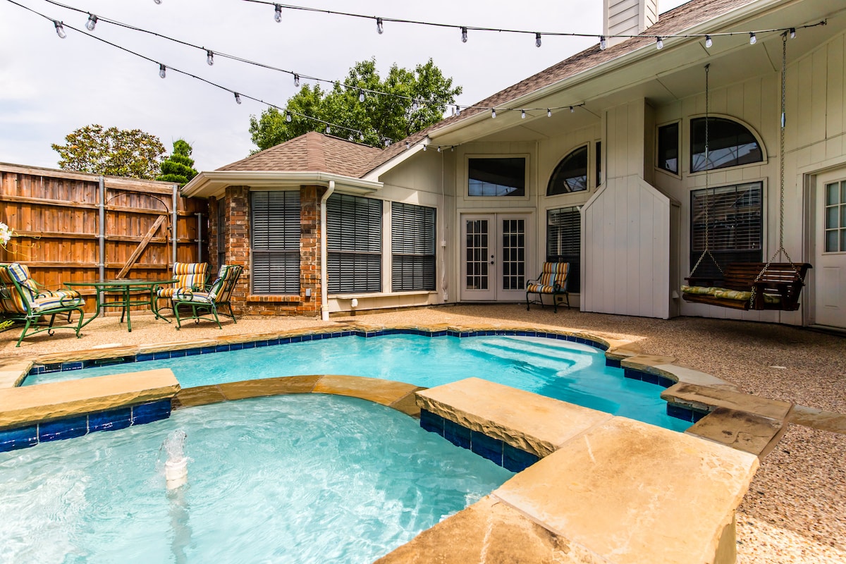 Linn snámha & Spá uathúil téite in aice le DFW ina chodladh 10 -12