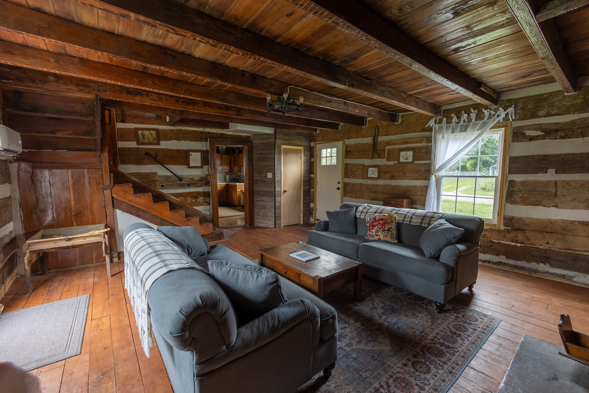 FÉINSEICEÁIL ISTEACH, ÓSAIS GHLAN PHRÍOBHÁIDEACH. Teach logála athchóirithe ar fheirm álainn 273 acra feadh ABHAINN KY. Suíomh suaimhneach & nádúrtha, gar do roinnt láithreán CONAIRE BOURBON a bhfuil tóir orthu agus feirmeacha capall. 10 NÓIMÉAD go dtí ANACLANN WOODFORD agus CAISLEÁN & príomhdhrioglanna. 8 NÓIMÉAD chun BIALANN & Beár Bourbon a stave. Feirmeacha capall áille (ÁTH NA FUINSEOIGE, Airdrie, Winstar). Áisiúil do KEENELAND, PÁIRC CAPALL KY, Versailles, Midway, Frankfort, Lexington, Louisville! Fánaíocht, rothar, iasc, fiadhúlra, caoirigh, gabhair, sicíní, réaltaí & tinte campála.