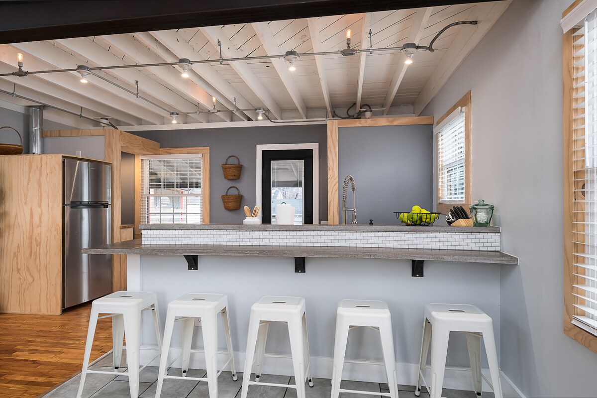 Cuireadh ar ár súile dúinn le déanaí faoi chamscéimeanna Airbnb! Déan áirithint linn nó le duine eile a bhfuil stair aige nó aici! Conair Bourbon The Buffalo Springs Distilling Company got it's start in 1868. Dúnadh é agus folmhaíodh na trádstórais amach faoi na 1970idí. Tá an foirgneamh seo ar cheann de na struchtúir dheireanacha atá fágtha ar an láithreán. Ba é an foirgneamh stairiúil seo an phríomh - oifig agus an teach geata do chuairteoirí ar an drioglann, ionas gur féidir linn seomra leapa amháin de mhéid na Banríona a thairiscint mar gheall ar mhéid an struchtúir.
