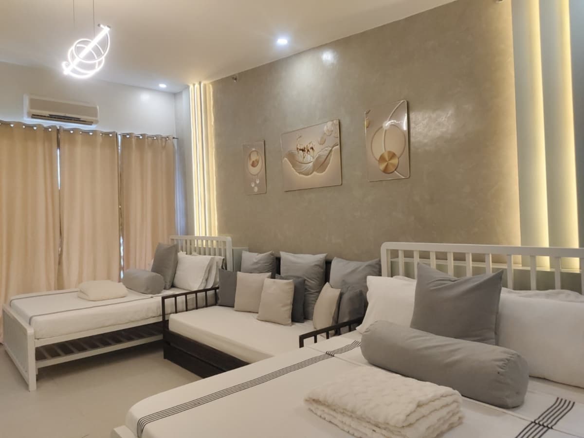 Stay in the center of the action in this one-of-a-kind place. Near to everything that you need. A very nice place to stay, hangout or just chill. * Aircondition * 65-inch TV * Soundbar Speakers w/ Subwoofer * WiFi * Air Purifier * Bed Size Double 54x75 * Pull-out Bed size twin KITCHEN * LG Refrigerator 7cuft. * Induction Cooker * Microwave Oven * Electric Kettle Pots & Pans * Kitchenwares & Utensils * Dinnerware BATHROOM * Single Point Water Heater * Fully Automatic Washing Machine