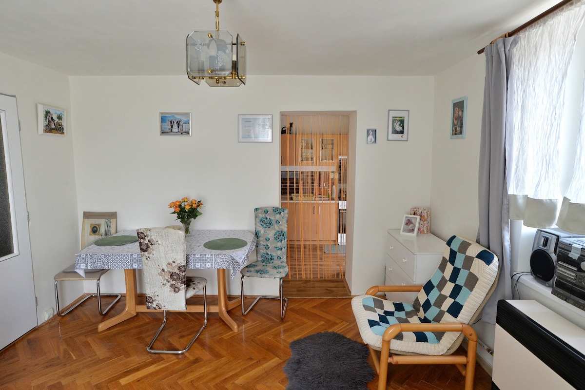 Located just few hundred meters from the famous Liberec cityhall, this apartment can easily accommodate up to six people. I know that for sure, we stay here once a while with our four children. There are plenty of toys to play with and a piano keyboard to play music. Big bathroom has both a shower and a bathtub. The house has been built in the same year as the famous Liberec city hall. Our apartment is on second floor.