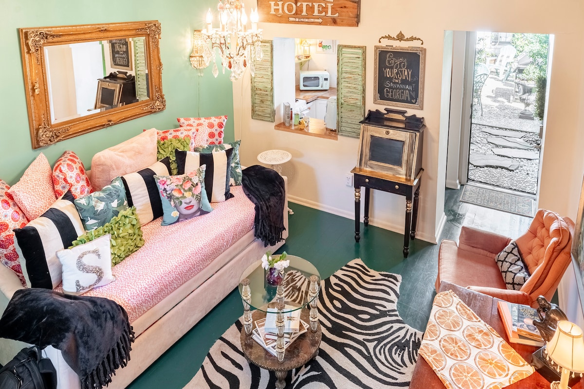 Fáilte go dtí "Judy's Nest ," a fheictear 1 seomra leapa Carráiste Árasán saintógtha le haghaidh lóistíní saoire ar cíos agus neadaithe i gcroílár Cheantar Victeoiriach stairiúil Savannah. Cuimsíonn an spás aoibhinn seo croílár dhraíocht an deiscirt, le sonraí gleoite, Balcóin Juliet, agus gnéithe ealaíne áitiúla. Is é an folcadán foirfe cúlráideach é do suas le 4 aoi a lorgaíonn tearmann pearsanta i gcroílár na cathrach. Níl sé oiriúnach do pháistí beaga faoi bhun 14 bliana d'aois