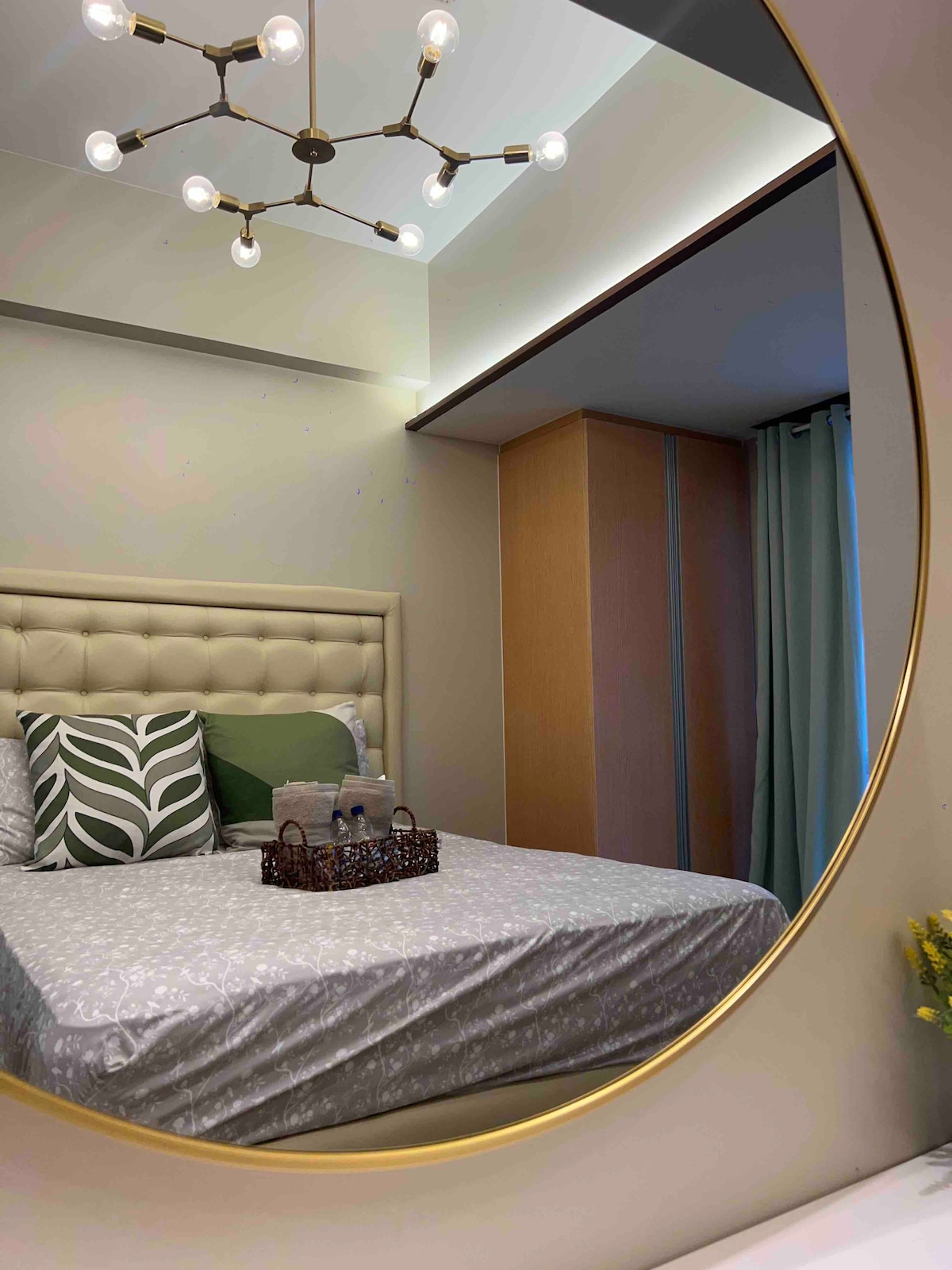 Fáilte go stiúideo luibheolaíoch atá deartha go cúramach i gcroílár Eastwood City! Meascann an spás cluthar 36 méadar cearnach seo uigeachtaí duilleacha, dathanna te adhmaid, agus blasanna beaga citris chun tearmann suaimhneach agus úrnua a chruthú sa chathair le radhairc áille ar na spéartha. Tugann fuinneoga móra solas nádúrtha isteach i rith an lae agus radharc suaimhneach ar shoilse na cathrach san oíche. Tá leaba bhanríona adhmaid ar a bhfuil éadaí leapa boga, cathaoir suaimhneach, áit bheag itheacháin do bheirt agus spás staidéir/oibre fairsing san árasán stiúideo.