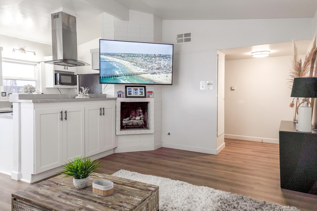 Sip wine by the fire pit at sunset — this coastal retreat is next to the sailing harbor and steps to the sand, Newport Pier, Marina Park, Mom's Beach, waterfront dining and cafes. Designed for laid-back luxury with rare A/C & garage parking. Prime location — no car needed. This Guest Favorite comes stocked: ✓ Private patio with fire pit ✓ Rare A/C ✓ Garage + EV charger ✓ Beach towels, chairs, boards ✓ Warm outdoor shower ✓ 85" TV + Sonos + fast Wi-Fi Dates go fast.