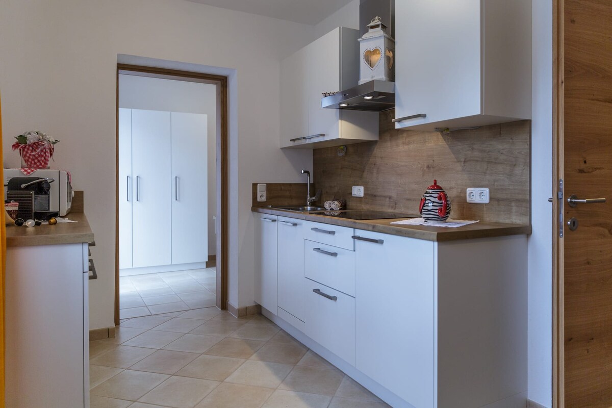 Berghaus - teachín i lár na tuaithe, timpeallaithe ag móinéir sléibhe cumhra i suíomh iomlán ciúin in Ausservillgraten - Winkeltal. Tá ár dteach saoire suite sa bhreis ar ár bhfeirm orgánach atá athchóirithe go grámhar,an smaoineamh maidir le saol sláintiúil in aer sléibhe íon, uisce óil glan, glasraí úra agus caora ónár ngairdín féin, chomh maith le hainmhithe sona ar ár bhfeirm orgánach a bheidh mar chuid de d'eispéireas saoire ar an Oberschupferhof.