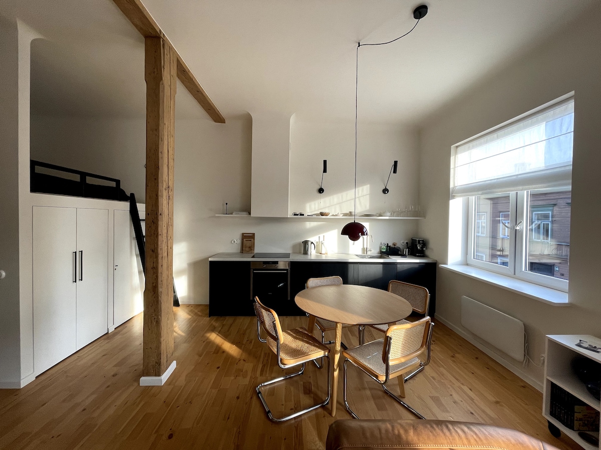 Tá an t-árasán stairiúil fairsing seo, atá nuathchóirithe agus galánta, ina bhfuil síleálacha arda agus urláir phaircéid athchóirithe, rud a chruthaíonn draíocht uathúil. Tá sé foirfe do 2–4 dhuine fásta agus do bheirt pháistí, agus tá sé compordach agus áisiúil i gcroílár Liepaja. Níl ann ach siúlóid ghearr chuig an margadh, chuig an Ollscoil, agus níl sé ach 15 nóiméad ar shiúl ón trá, is áit fhoirfe é do d'fhanacht. Bain sult as atmaisféar te fáilteach le compord nua-aimseartha i suíomh stairiúil.