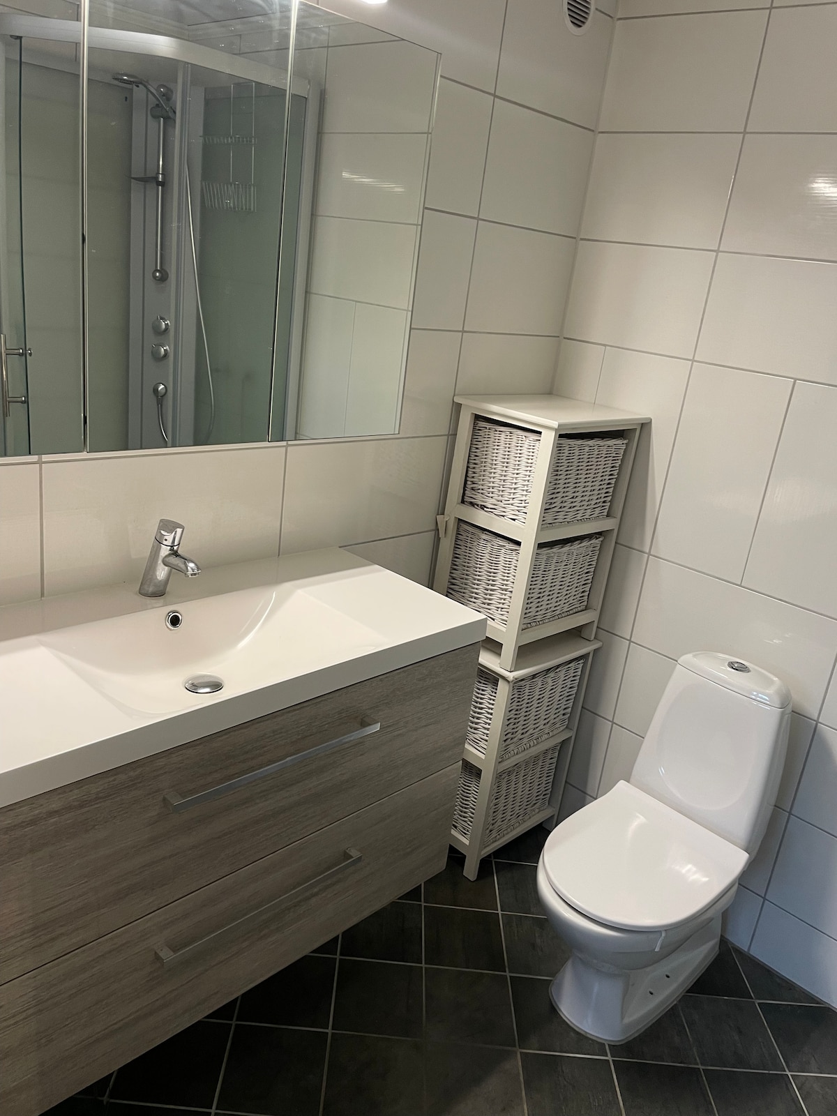 Árasán úr fairsing dhá sheomra leapa le suíomh lárnach in Drammen. Páirceáil sráide saor in aisce agus achar siúil chuig an traein, chuig an mbus, chuig an bpáirc agus chuig an gcathair. 30 nóiméad ar an traein go hOsló! Codlaíonn sé cúig cinn, spás oifige, bord bia, teilifíseán w/Apple TV, cithfholcadán agus meaisín níocháin. Árasán: seomra suí(leaba thoilg), seomra leapa(leaba dhúbailte + leaba shingil), seomra folctha, halla agus seomra níocháin. Tá an t - árasán ina chuid de theach leathscoite agus tá sé suite i gcomharsanacht chiúin ina bhfuil radhairc iontacha. Feistithe le gach rud atá uait, earraí cistine agus línéadach leapa/tuáillí do 5 dhuine.