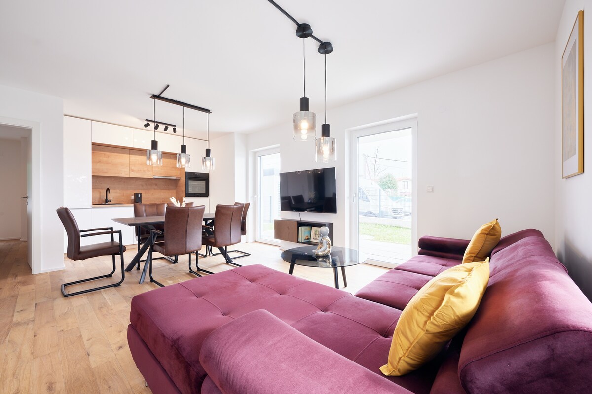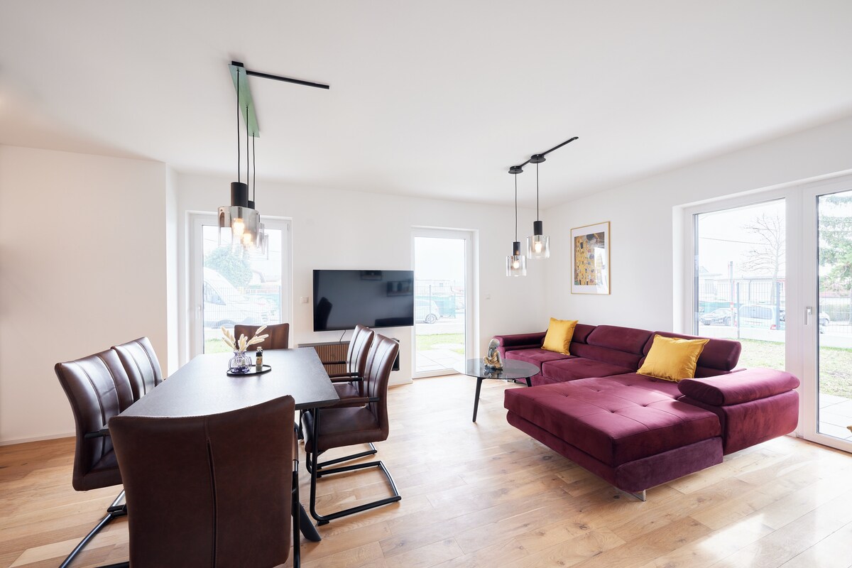 Tá an t - árasán nua - aimseartha, cosúil le lochta 80m2 suite i gceantar álainn ciúin cónaithe i Vín ina bhfuil rochtain saor in aisce ar linn snámha phríobháideach lasmuigh. Is féidir lár na cathrach a bhaint amach i 25 nóiméad ar thram 43 go díreach
