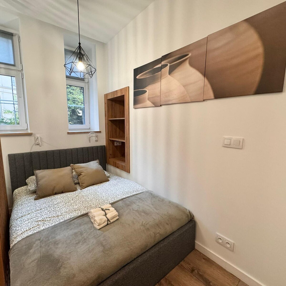 Aimsigh tearmann galánta in Katowice - Koszutka le hidirlíon sárthapa! Tá radharc ciúin sráide, cistin nua - aimseartha lánfheistithe, áit chónaithe theolaí ina bhfuil tolg compordach, leaba 140 cm, agus seomra feistis fairsing san árasán 32 m² seo, díreach céimeanna ó Spodek. Foirfe do thaistealaithe aonair nó do lánúineacha, cumascann sé compord agus galántacht in áit den scoth. Déan áirithint anois le haghaidh fanacht speisialta! 😊