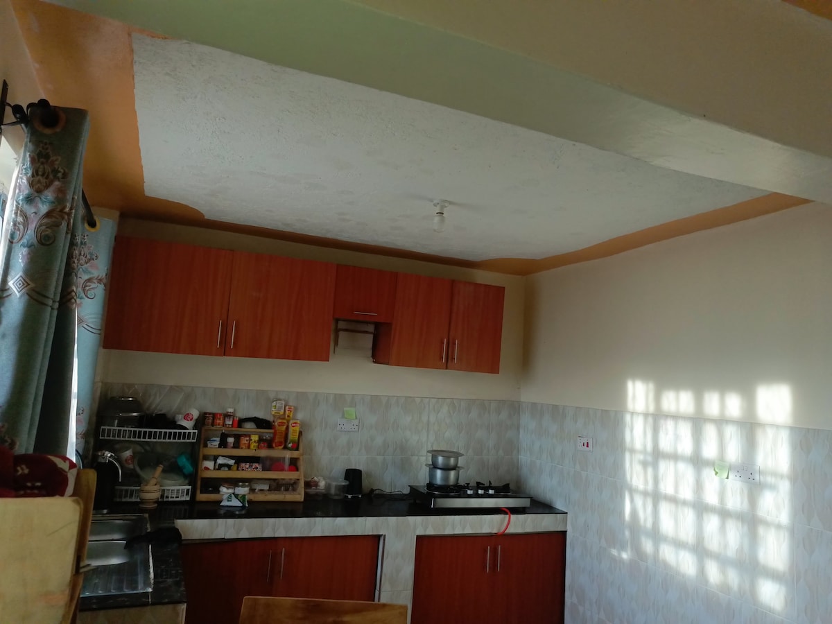 A calm, spacious 1-bedroom near Naivas tilisi, Chunga Mali, 100m from the tarmac. Ideal for couples or focused stays, work, relax, or reset in peace. Features a private balcony, fast WiFi, rooftop with great views, and secure parking. Enjoy a swimming pool 100m away and a hot pool 3km away. Perfect for quiet getaways, remote work, or recharging in a serene, convenient location.