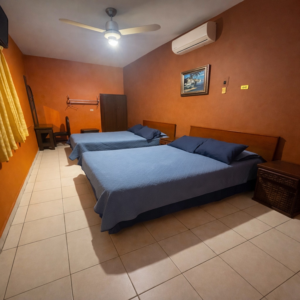 Habitación Doble Matrimonial con Baño Privado – Hotel Raffaello Ubicada en el tercer nivel, nuestra habitación ofrece un ambiente moderno, privado y acogedor, ideal para descansar después de un día de paseo o trabajo. Cuenta con dos camas matrimoniales, baño privado, aire acondicionado, televisión, escritorio y Wi-Fi gratuito. Perfecta para parejas o viajeros que buscan comodidad, tranquilidad y una excelente ubicación en Linares.