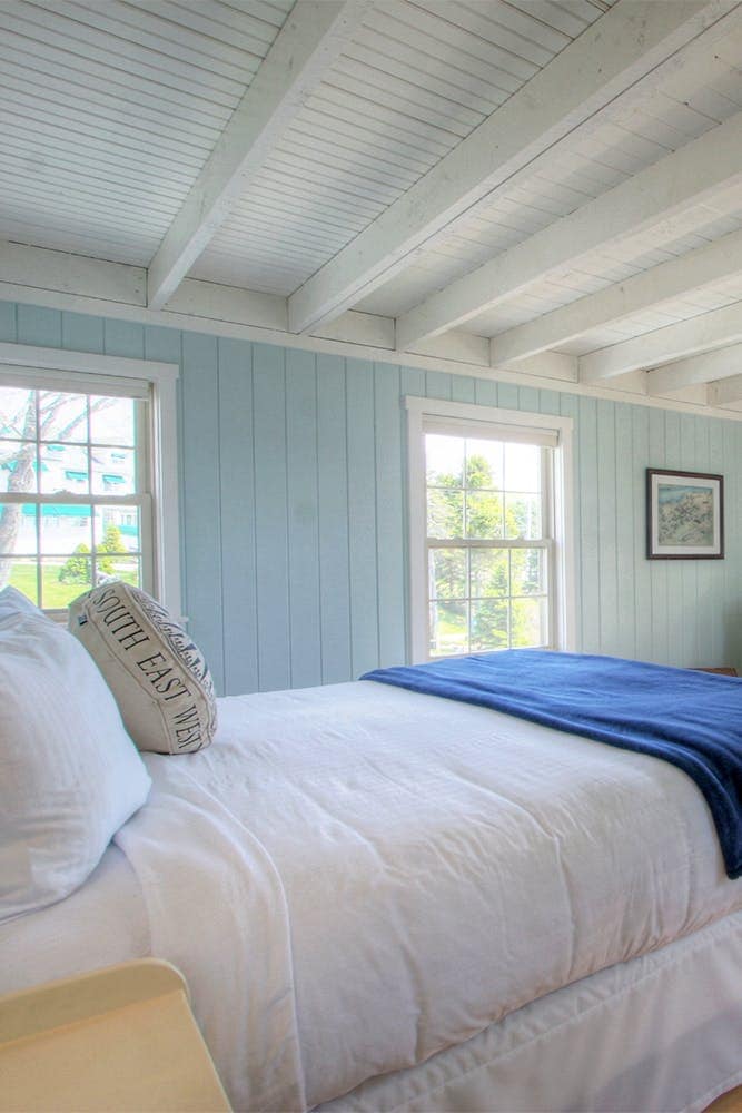 Dúisigh go dtí radhairc scuabtha an chuain i Seomra 15 ag Admiral's Quarters Inn. Tá leaba Rí, cúpla trundle, teallach, balcóin phríobháideach, agus balla fuinneoga os cionn Boothbay Harbor, oileáin agus tithe solais sa seomra galánta 2 sheomra seo. Bain sult as cithfholcadán siúil isteach, mionchuisneoir, agus dhá bhealach isteach phríobháideacha - níl le déanamh ach céimeanna ó shiopaí i lár na cathrach, ó bhia agus ó eachtraí cois uisce. Ceann de na seomraí is mó a iarrtar sa teach ósta!