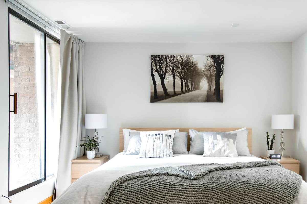 Draíocht stairiúil le nuashonruithe nua - aimseartha sa 1 Seomra Leapa Lincoln Park Condo. Is é seo an áit fhoirfe le fanacht agus tú in Chicago agus tú ar shiúl ón bpáirc is mó in Chicago, ceann de na zúnna is sine sa tír, bia a bhfuil cáil náisiúnta uirthi, cosáin cois locha, músaeim, Ollscoil DePaul agus go leor eile. Agus tú sa bhaile, lig do scíth sa seomra suí teolaí, cócaráil dinnéar sa chistin iomlán nuashonraithe, sruthlaigh le cloigeann an chithfholcadáin báistí, nó faigh scíth ar leaba na banríona sa seomra leapa.