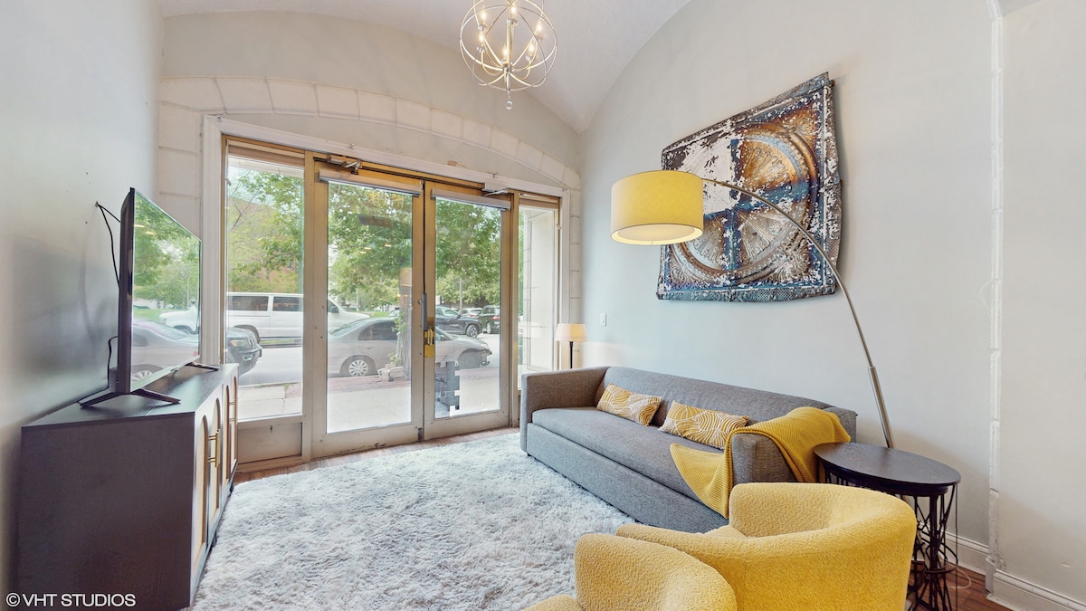 Fáilte chuig ár gcúlú gleoite i gceantar stairiúil an tSeanbhaile Triantán/Lincoln Park i Chicago. Tá an t - árasán 3 sheomra leapa seo atá suite go háisiúil, lena n - áirítear spás oifige, neadaithe i gcroílár comharsanachta cónaithe sábháilte le siúlóid 5 nóiméad chuig Líne Brown agus 10 nóiméad go dtí an Líne Dhearg. Laistigh de shiúlóid 20 nóiméad, beidh tú ag Zú Pháirc Lincoln, Trá, Dara Cathair, agus Sráid Wells, ag tumadh tú féin i mbeocht an tseanbhaile. Déan áirithint anois chun an chuid is fearr de Chicago a bhlaiseadh. Páirceáil+Luchtú EV.