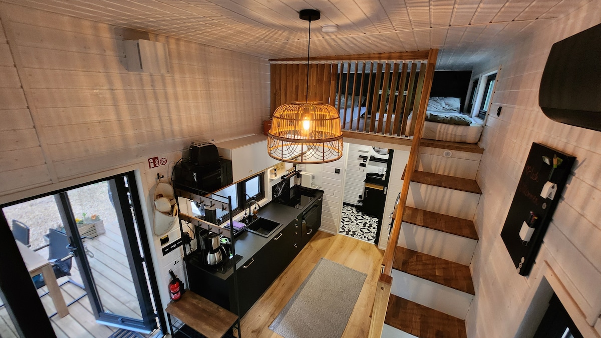Tabhair cuairt orainn inár dteachín nua - athchóirithe ar an talamh os cionn 1000 m² le creek díreach in aice láimhe, balcóin clúdaithe agus limistéar gairdín mór! Tá an teach adhmaid 50 méadar cearnach in áit chiúin ar imeall an tsráidbhaile agus músclaíodh é le go leor grá do mhionsonraí óna chodladh Áilleacht Codlata. Rinneadh ár dtearmann beag a athchóiriú go bunúsach agus cuireadh troscán nua air laistigh agus lasmuigh. Glac sos agus athluchtaigh do chadhnraí ag an teallach i dtráthnónta teolaí :-)