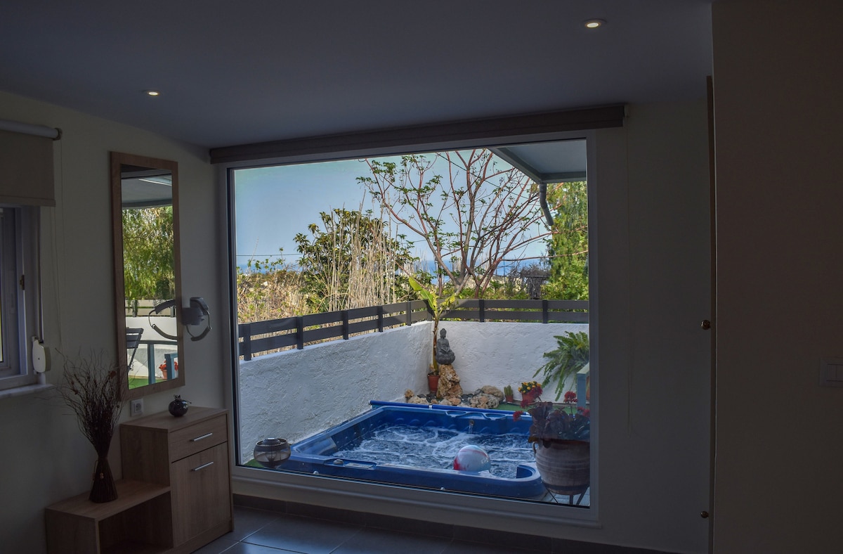 Geallann an tsíocháin & an radharc go dtabharfaidh tú an tsíocháin atá á lorg agat le linn do shaoire agus an radharc iontach ón ngorm gan teorainn a shíneann os do chomhair! Is teach suaimhneach é, atá i bhfad ón trá agus siopaí nach bhfuil ach 4 nóiméad ag siúl!Foirfe do theaghlaigh mhóra, mar go bhfuil 2 sheomra leapa ann.Tá gach fearas leictreach feistithe go hiomlán ann agus tá fearais bhreise ann amhail triomadóir gruaige, tóstaer, citeal, déantóir caife, tóstaeir, iarann.