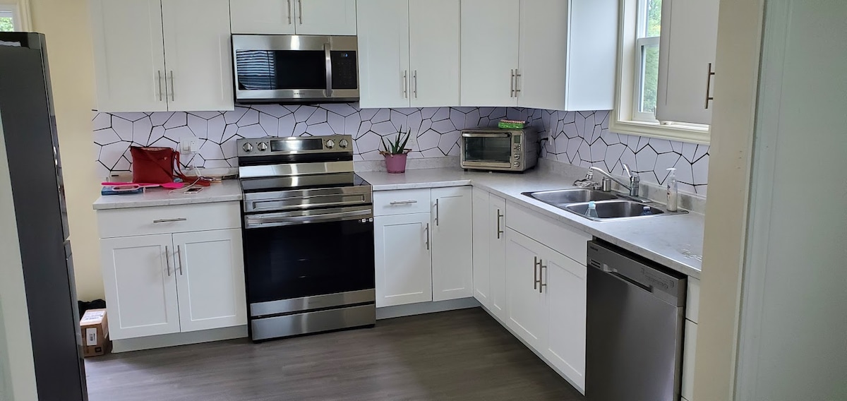 Is Airbnb é seo atá suite go lárnach agus atá suite díreach nóiméad ón aigéan. Níl Fortress Louisbourg ach 30 nóiméad ar shiúl. Níl Conair Cabot i bhfad ar shiúl le tránna iontacha agus radharcra eipiciúil. Tá bád farantóireachta Thalamh an Éisc 15 nóiméad ar shiúl. Is aonad oscailte coincheap 1 seomra leapa é áit chompordach ina bhfuil gach amneties den bhaile. Meaisín níocháin & triomadóir san áireamh. Tá leaba mhéid na banríona thar a bheith compordach le duivé deas. Idirlíon gan sreang & teilifíseán cábla cloigín. Tá fáilte roimh mhuintir na háite a bhfuil léirmheasanna maithe acu go léir. Paitió, teallach lasmuigh sa chlós cúil sa samhradh.