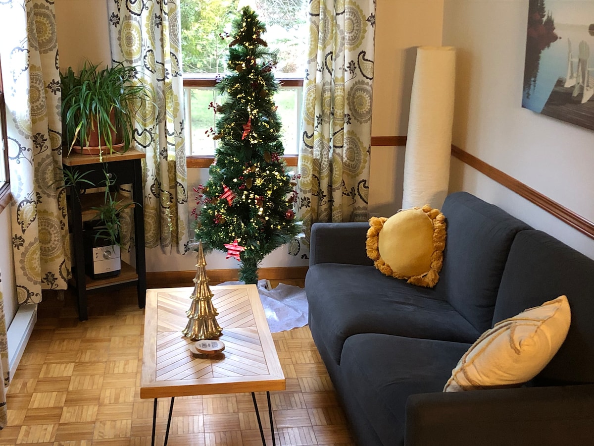Refuge rustique unique en son genre parfait pour décrocher du quotidien. Pas de reseau cellulaire ***WI-FI haute vitesse*** Sans eau courante (nous fournissons l'eau selon vos besoins pour faire vaisselle et laver mains) avec électricité, poêle à bois ( bois fourni interieur en saison froide octobre a avril ) et toilette compost foyer extérieur : nous fournissons de la croute de cèdre pour les feux exterieurs. il est interdit d'utiliser le bois intérieur pour faire des feux extérieurs.
