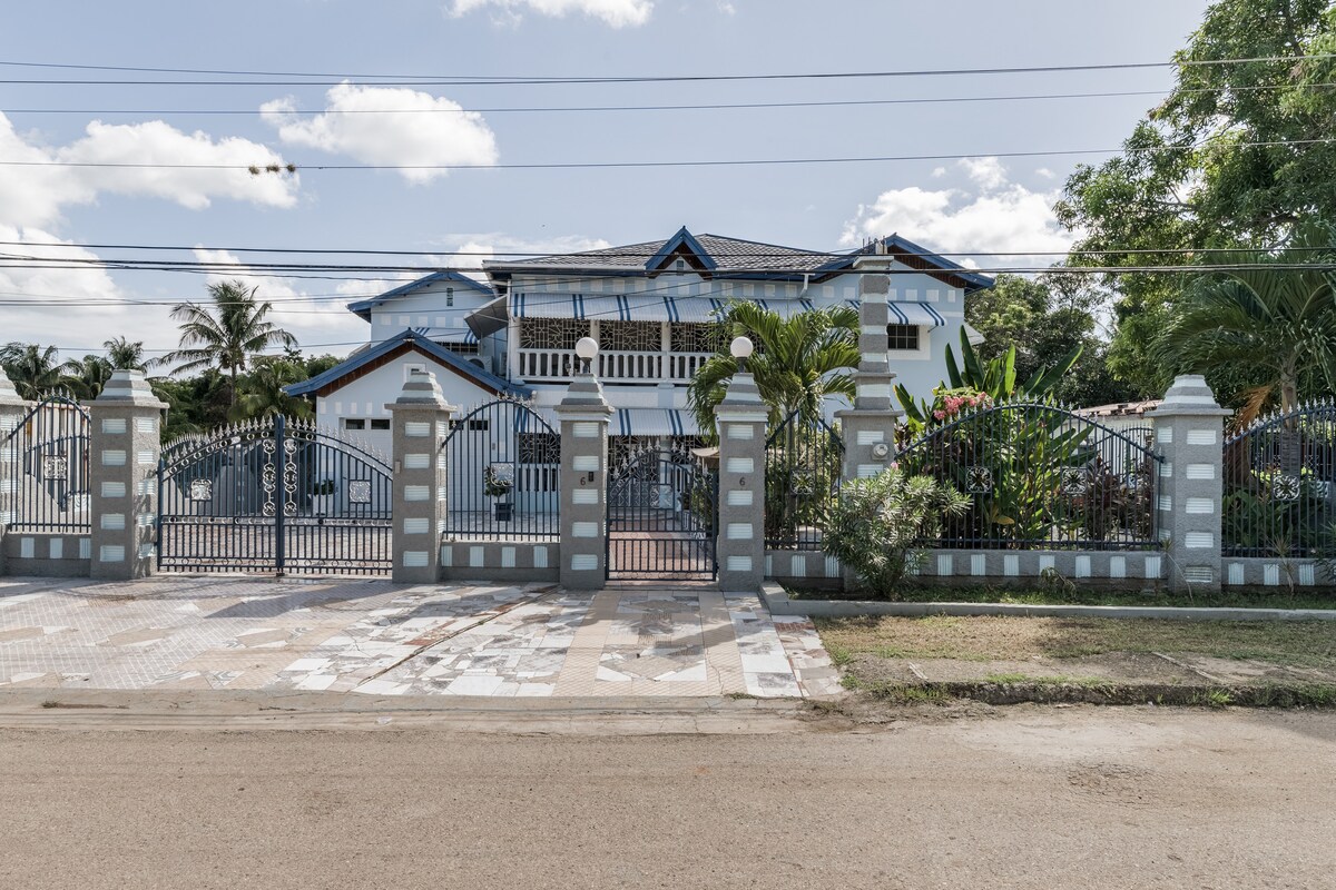 Fáilte chuig do thearmann galánta! Tá seomraí folctha en - suite, seomra teilifíse, bricfeasta & áiteanna itheacháin, agus paitiónna clúdaithe chun tosaigh agus ar ais le feiceáil sa réadmhaoin 5 sheomra leapa seo atá deartha go huathúil, agus iad araon ag breathnú amach ar thailte iontacha. Bain sult as an mbeár príobháideach lasmuigh agus as an spás siamsaíochta, foirfe chun do scíth a ligean nó chun sóisialú a dhéanamh. Foirfe do lucht saoire agus do thaistealaithe gnó araon, i ngar do mhol gnó, siamsaíocht, nithe is díol spéise do thurasóirí, agus do cheantair siopadóireachta Liguanea agus Half Way Tree in New Kingston. Déan áirithint inniu!