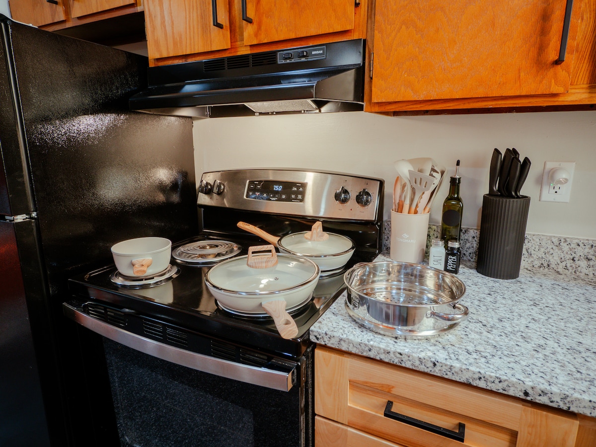 Fan i dteach feirme Victeoiriach athchóirithe ó na 1920idí i lár bhaile De Soto, KS—achar siúil go Lawrence agus KC. Foirfe do 💍 bhainiseacha, ⚽ FIFA 2026, agus turais teaghlaigh. Tá cistin lán le soláthairtí, beár caife, áit itheacháin d'8 nduine, Teilifís Chliste, Wi-Fi tapa, spás oibre agus póirse clúdaithe sa teach 3BR/2BA seo. Suíomh suaimhneach i mbaile beag in aice le hionaid KC: Sporting KC, Azura Amphitheater, Stone Pillar Winery, The Barn at Kill Creek, Panasonic. Céimeanna ag an dá bhealach isteach; seomraí leapa thuas staighre. Comhaontú cíosa ag teastáil.