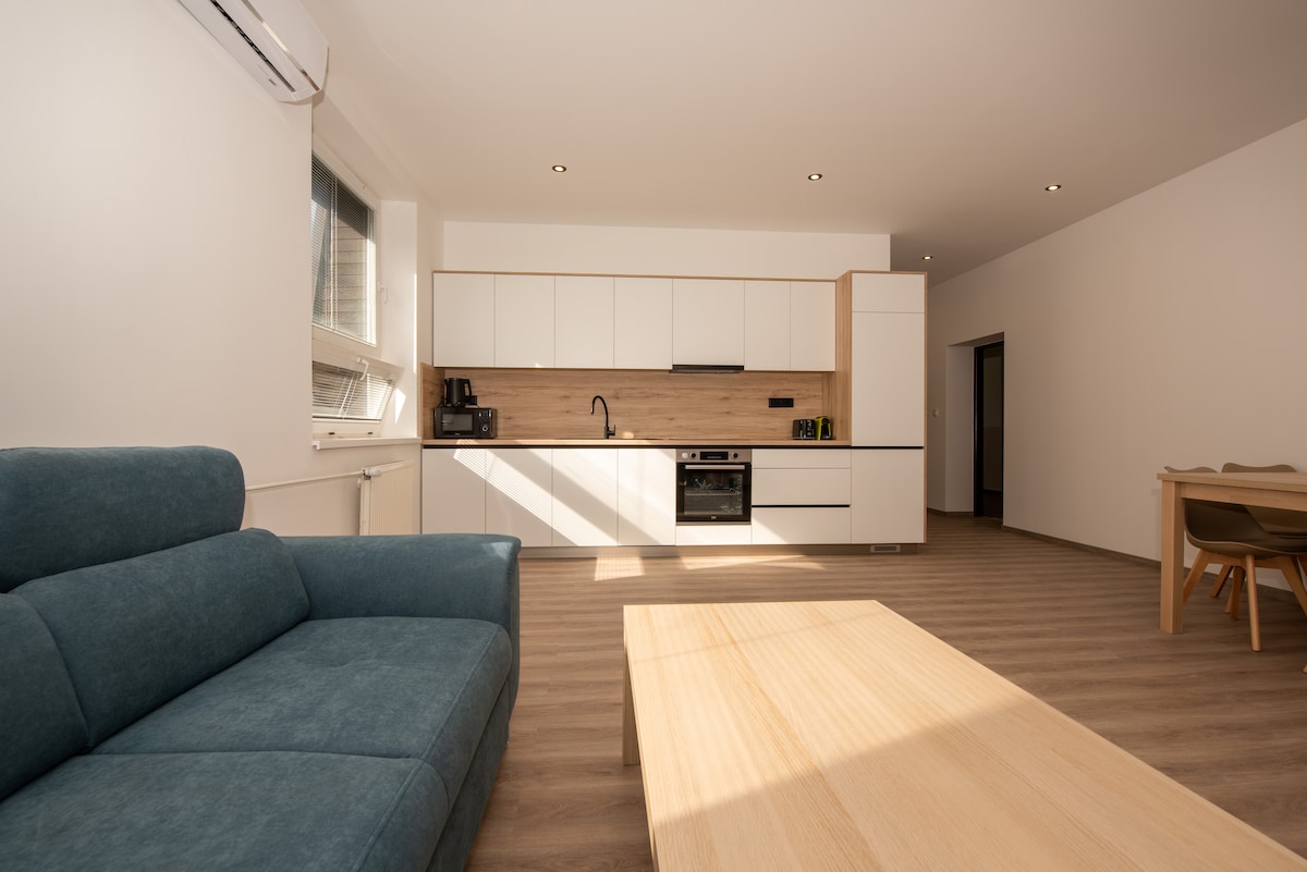 Lóistín nua i bhfoirgneamh stairiúil a chomhcheanglaíonn draíocht bhunaidh le stíl glamour nua - aimseartha. Cuireann ár n - árasáin faoi dhraíocht thú le timpeallacht ghalánta inar féidir leat a bheith ar do shuaimhneas. Táimid suite i gcroílár Liptovský Mikuláš, ag tús an chreasa do choisithe, rud a chiallaíonn go mbeidh an buntáiste agat go mbeidh suíomh den scoth agat. Gheobhaidh tú tú féin i lár an ghnímh láithreach, gar do na príomhnithe is díol spéise agus na nithe is díol spéise sa chathair bhríomhar seo. Is féidir leat taitneamh a bhaint as radhairc iontacha ar an teach mainéir stairiúil, rud a chuireann uathúlacht leis.