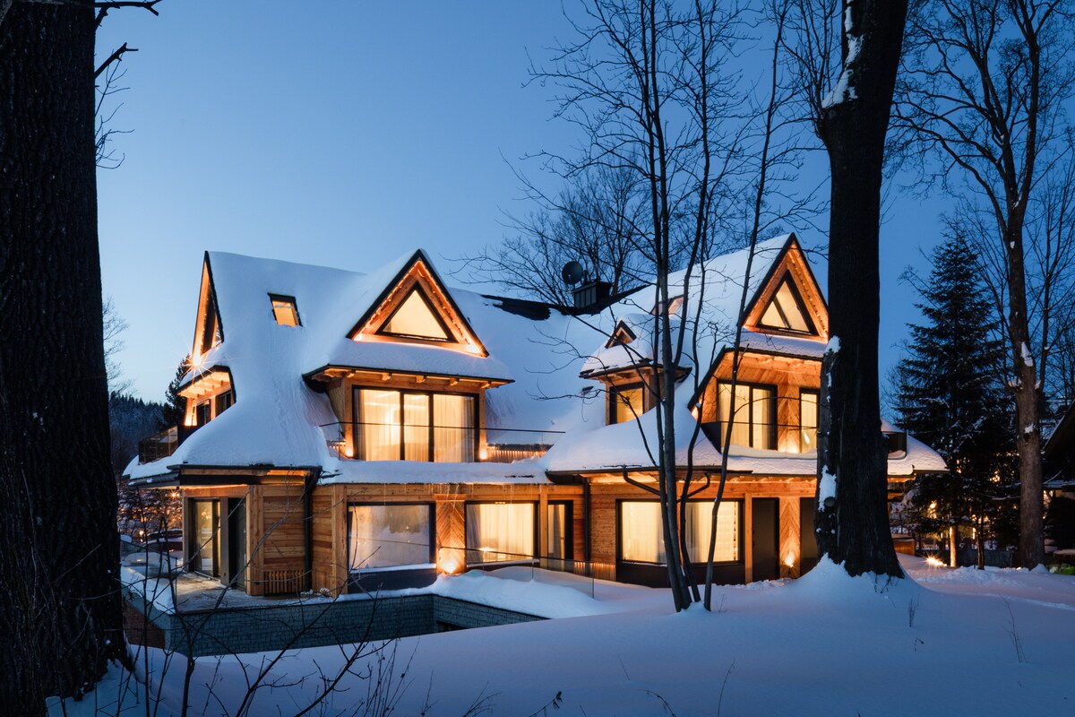 Is villa sómasach é Grand Chalet a bhfuil achar 250 m2 aige i gcroílár Podhale agus radharc lánléargais ar na Tatras. Is féidir le haíonna taitneamh a bhaint as: 4 sheomra leapa aerchóirithe, 4 sheomra folctha, tobán te le radharc, seomra allais, seomra cluichí le billiards agus PS5, áit aclaíochta, stáisiún oibre snáthoptaice, cúinne do pháistí, teallach agus beárbaiciú ó cheann ceann na bliana. Cuireann an villa lóistín compordach ar fáil do 10 nduine. Foirfe do laethanta saoire teaghlaigh, cruinnithe le cairde nó saoire oibre – compord, nua-aimsearthacht agus atmaisféar uathúil in aon áit amháin.