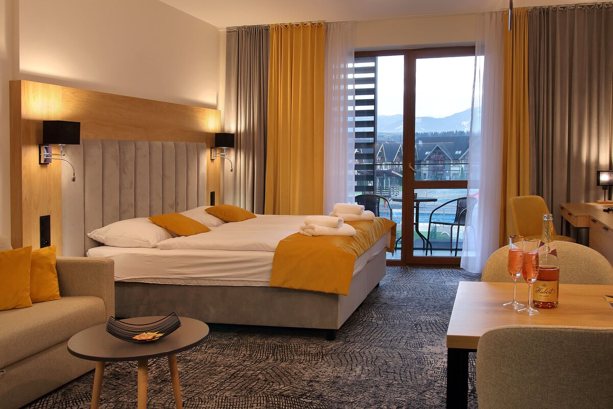 Is árasán nua - aimseartha é Panorama_M05 do 2 -4 dhuine le radharc iontach ar Shléibhte Tatra. Tá seomra suí ann le cistinéad, seomra leapa, seomra folctha ina bhfuil bidé agus paitió. Tá toilg leapa ar stíl na hIodáile le tochtaí ardchaighdeáin sa dá sheomra. Is rogha den scoth é Panorama an árasáin le haghaidh saoire ghearr rómánsúil do bheirt, do chairde, nó le haghaidh fanacht teaghlaigh. Buntáiste breise is ea an spás páirceála sa gharáiste faoi thalamh (uasairde 2 mhéadar), ina bhfuil stáisiún luchtaithe príobháideach d'fheithiclí leictreacha.