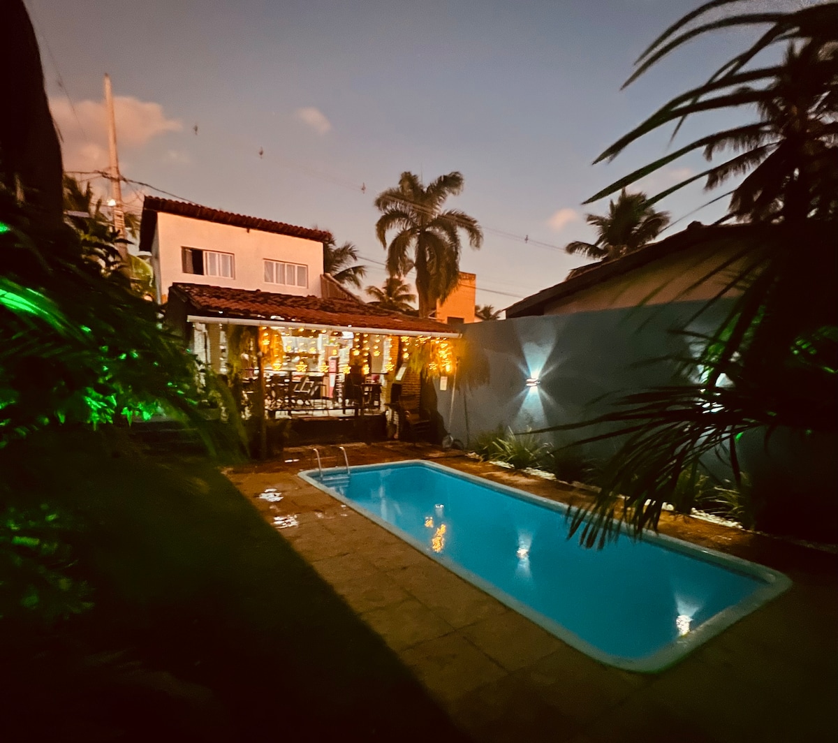 Maol ag Vila Aconchego Gameleira. Arna fhoirmiú ag teach agus 4 árasán neamhspleách agus curtha in áirithe. Lonnaithe sa láthair is glaise agus is crainn ar Thrá Pipa. Sráid an stáisiúin póilíní sibhialta, rochtain éasca i gcarr ar na tránna go léir agus ar an ionad. Sráid Calçada. Níl línéadach leapa agus tuáillí ar fáil. Ní cheadaítear cóisirí ná solas ard na gréine.