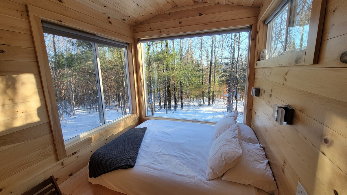 Lig do scíth i bhforaois chiúin ghiúise timpeallaithe ag cosáin siúlóide phríobháideacha áille, le gach rud a theastaíonn uait ar do mhéaracha! Déanaimid maireachtáil lasmuigh den ghreille éasca le héadaí leapa sómasacha, arán úr agus uibheacha ónár bhfeirm, caife, uachtar, oighear, cithfholcadán te lasmuigh (séasúrach), adhmad dóiteáin, marshmallows, soilse a oibríonn le ceallraí, agus tobán te dóite adhmaid! Díreach leathmhíle ón Scioból ar an Pemi, agus nóiméad ó na lochanna, na haibhneacha agus na cosáin sléibhe. Níl le déanamh agat ach na héadaí a thabhairt leat!