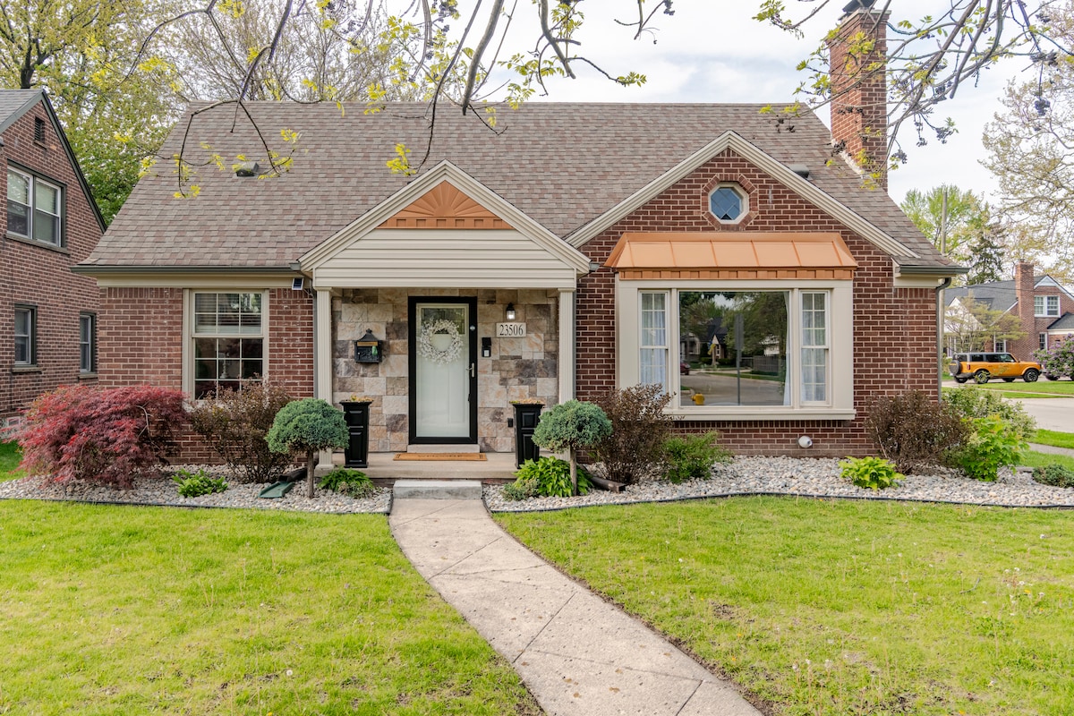 “Saoire ghearr dhraíochtúil ”, candaí súl ”,“ faoiseamh”, “an Airbnb is fearr riamh”. An póirse is fearr in Ferndale. Suíomh iontach in Iarthuaisceart Ferndale stairiúil álainn ina bhfuil tithe uathúla agus cosáin chrainn. Ealaín iontach agus rac - rolla/maisiúchán eicléictiúil. Cúpla bloc chun siopadóireacht a dhéanamh, bia a bhailiú, dinnéar a fháil ag ceann dár gcinn scríbe beadaithe go leor (siúlóid 1/2 míle/8 nóiméad). Eipeasóid phíolótach “What You Get For The Money ”,“ 5 Cool Detroit Airbnb's ”de chuid Magazine, scéal clúdaigh dearaidh intí“ Detroit News Homestyle ”3x!