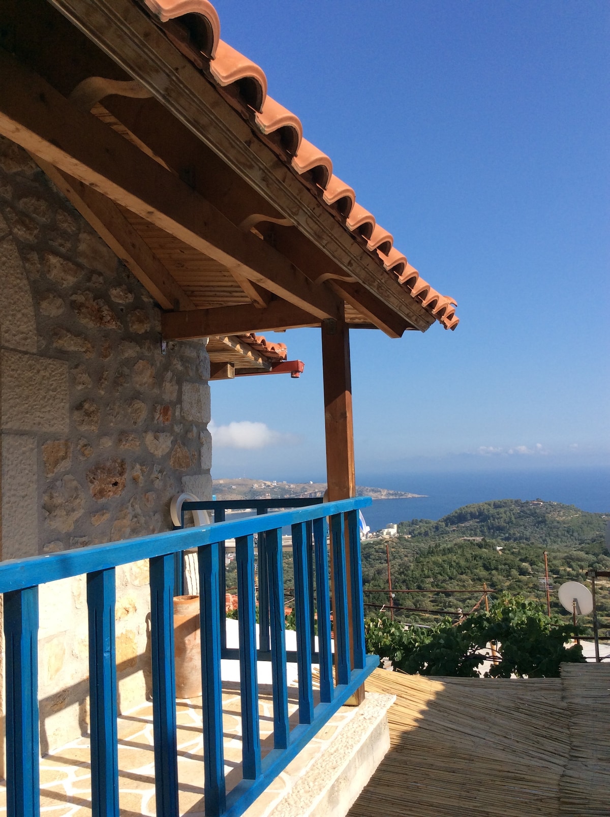 Cé go bhfuil an teach crainn álainn rómánsúil seo suite sa choill, tá sé éadrom agus fairsing le balcóin a bhfuil radharc aige ar an tírdhreach glas atá chomh tipiciúil sin de Corfu. Cuireann na mionsonraí chomh maith leis na fabraicí blasta leis an atmaisféar. Cé go bhfuil sé beag tá gach rud a theastaíonn uait ann. Cuirfidh sé faoi dhraíocht thú. Tabhair faoi deara nach bhfuil an teach seo oiriúnach do pháistí faoi bhun 6 bliana d'aois.