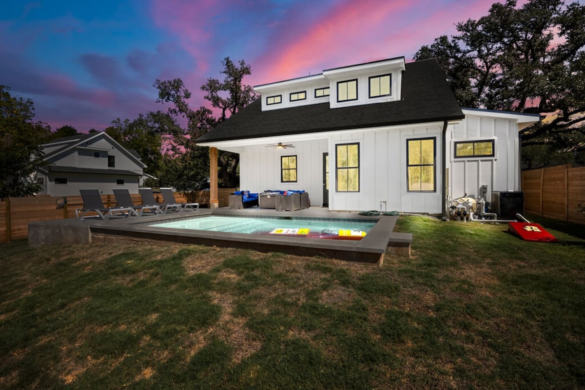 Harmony is a gorgeous upscale home located two blocks from Main Street. The home has been custom designed to host families, couples, and friend getaways. Enjoy the open layout, spacious bedrooms and fantastic dining and kitchen areas this gorgeous has to offer. Step outside to your private backyard relaxation oasis featuring a swimspa pool, sauna, hot tub, spacious deck, sipping wine around the fire pit, or enjoying a hot cup of coffee on the front porch! Book your Hill Country getaway today!