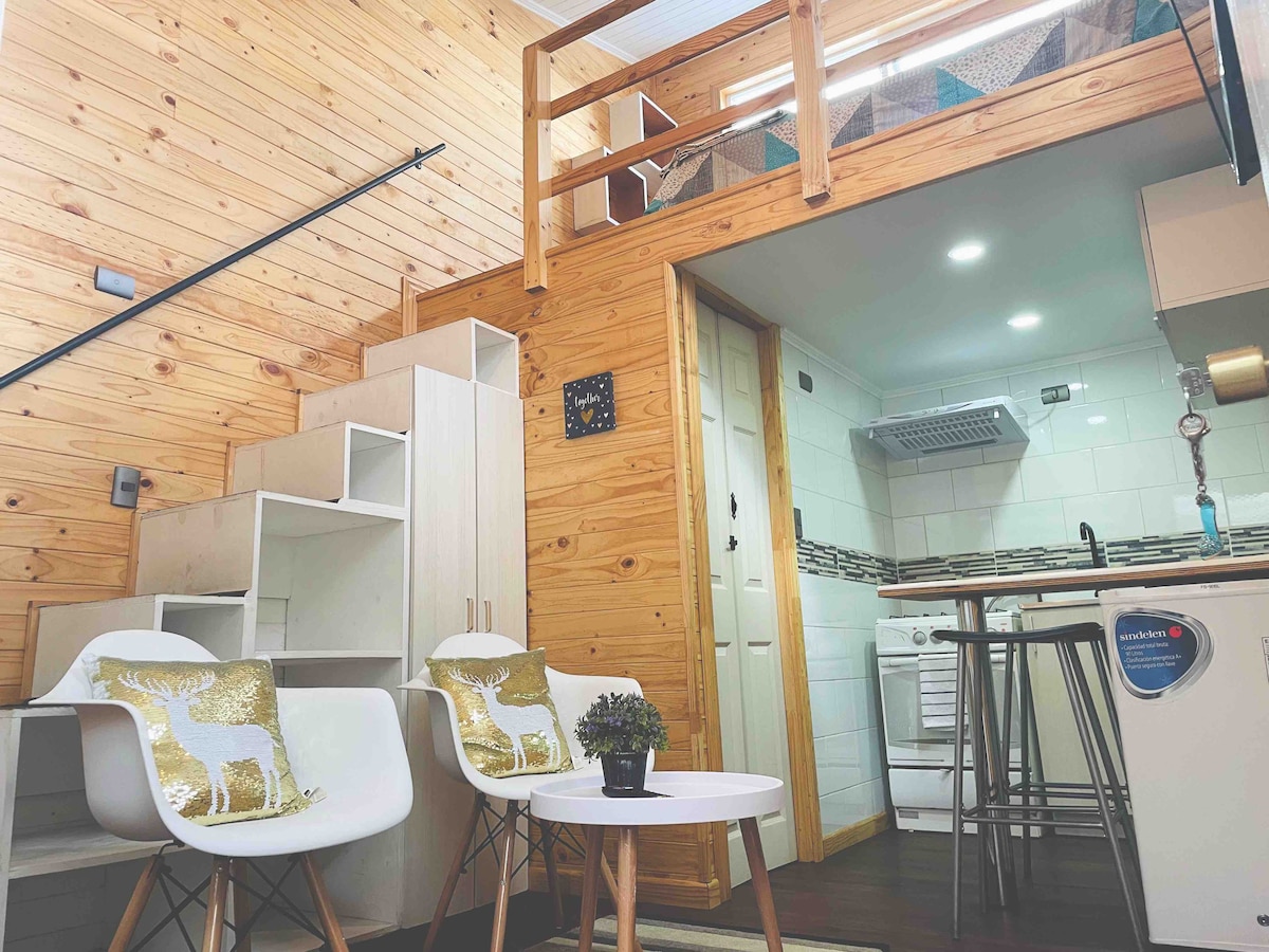 Fáilte go dtí an deisceart na Sile, in aice leis an chathair na Varas Puerto, ach 7 ciliméadar ar feadh Bealach 225 Camino go Ensenada, is féidir leat taitneamh a bhaint as Loch Llanquihue agus a tírdhreach álainn nádúrtha na bhforaoisí agus bolcáin. Cuirimid fáilte romhat chuig Teach Beag Bídeach compordach agus tíriúil atá feistithe go hiomlán do lánúin. Bain tairbhe as an rochtain dhíreach ar an trá, agus déan dang i gcadhcanna nó ar thurais rothar feadh Bhealach Álainn Loch Llanquihue.