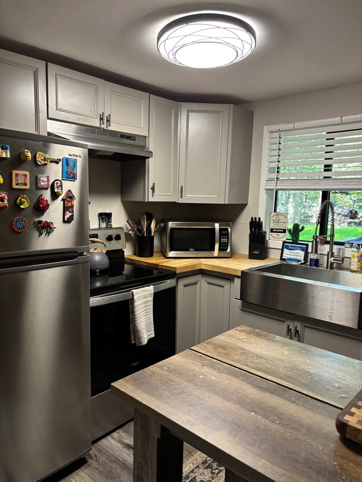 This cozy chalet is located in Locust Lake Village, a sun-filled area known for open living. The home has a cozy feel, fit for a relaxing stay. The first floor has a fully stocked kitchen, a dining area for 8, two bedrooms, and a full bath. The second floor, you'll find a large primary bedroom and a full bath. The basement is equipped with an entertainment and game room featuring a 75" TV and multiple video games to keep you entertained. To book the chalet guest must be at least 25 years old.