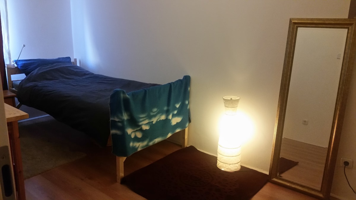 Árasán geal in áiléar villa, ar imeall Kassel le naisc mhaithe tram agus siopadóireacht. Seomra suí oscailte ina bhfuil áit chistine agus áit itheacháin ina bhfuil radharc amach ar threetops agus ar ghairdíní, tolg, córas ceoil (vinil, CD), teilifís, raidió + Wi - Fi. Tá an leaba mhór (160x200 cm) scartha le leagan amach an tseomra; seomra cithfholcadáin. Nótaí tábhachtacha Tá an t - árasán ar an 2ú hurlár, tá an staighre uachtarach géar. Tá an leaba faoi dhíon claonta. Saor ó ainmhithe, gan ach daoine nach gcaitheann tobac, gan aon chóisirí.