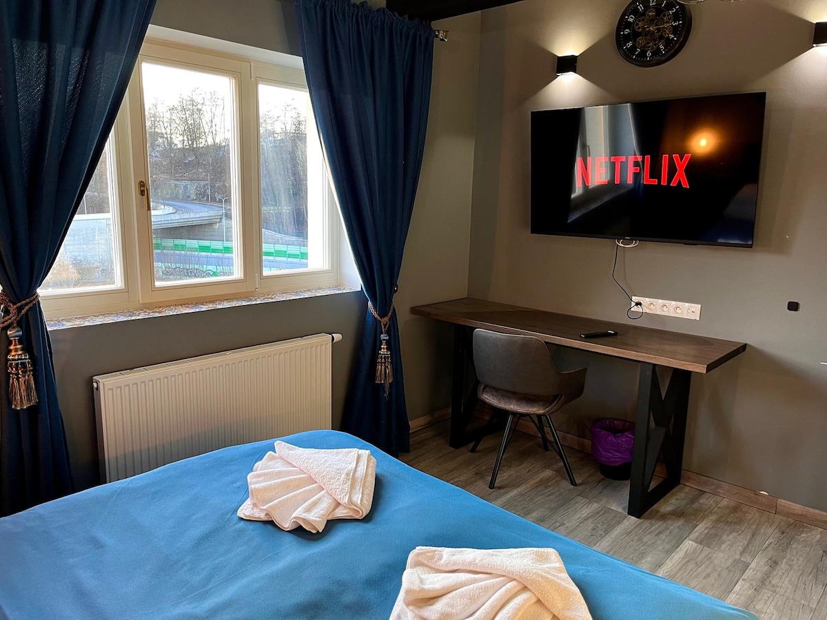 Árasán nua - aimseartha lánfheistithe san ionad in aice leis an óstán Teirmeach (100m). Tá an t - árasán suite 300 méadar ó Phrág - stad bus Karlovy Vary agus stad bus aerfoirt Karlovy Vary. Is féidir dul go dtí an t - árasán de shiúl na gcos. Má tá tú ag tiomáint i gcarr, cuirfimid eolas ar fáil maidir le cá háit le carr a pháirceáil. Tá an t - árasán neamh - chaite, Wi - Fi saor in aisce.