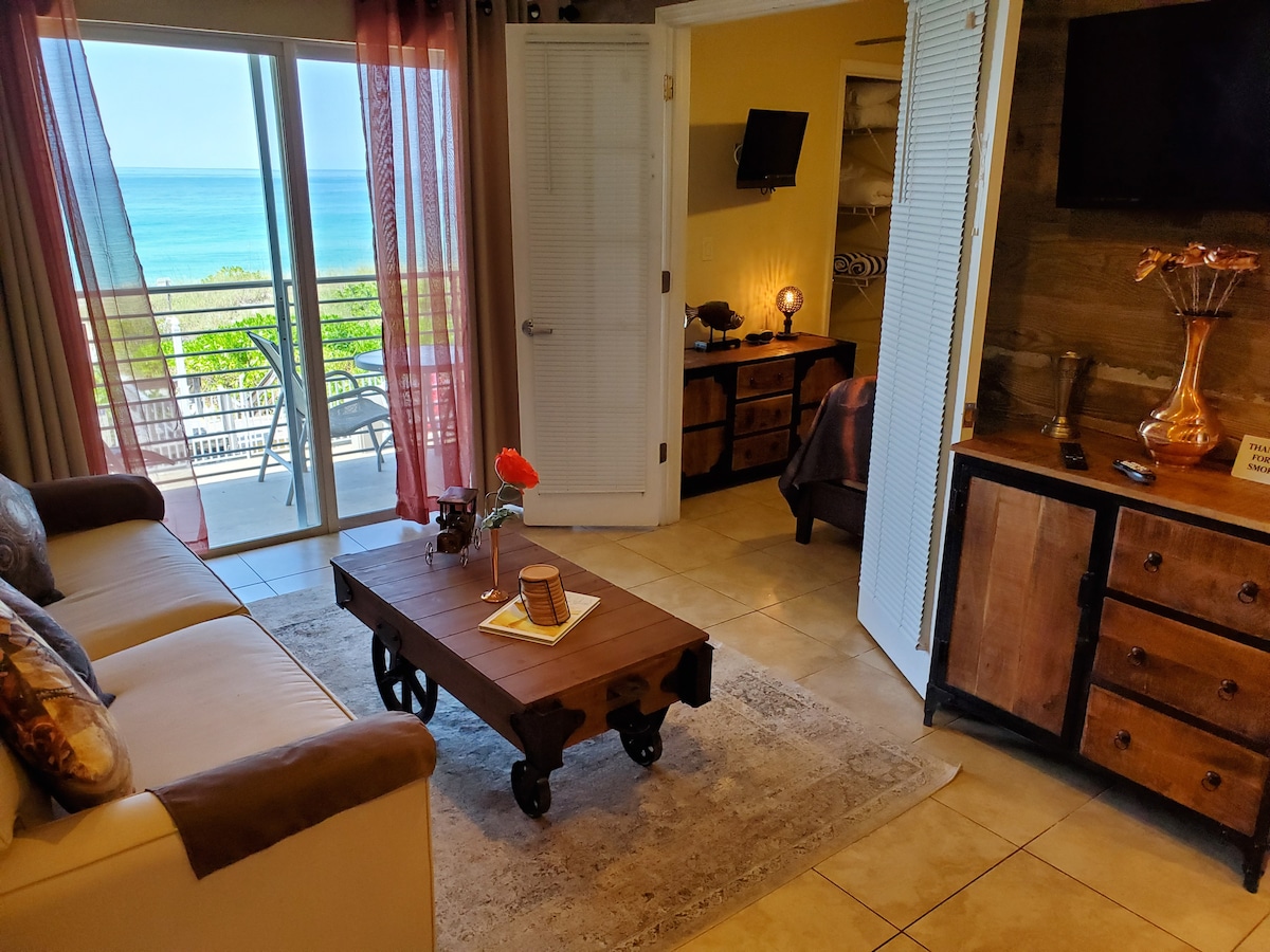 Tá rochtain phríobháideach ar an trá ag Aonad #107. Ní bheidh ach cúpla céim chuig an trá ina radharc iomlán ar an murascaill. Tá an t - aonad árasán deiridh seo ciúin, urlár na talún. Stiúideo beag atá ann: leaba nua mhurphy na banríona agus leaba thoilg na banríona. Gan seomra leapa ar leith. Soláthar teoranta teoranta táirgí/gallúnach/tuáillí ar dtús. Úsáid choitianta W/D trasna ón aonad. Is stiúideo beag é seo ag 330 troigh chearnach. Athmhúnlaíodh é le déanaí. Forais, aonad, linn snámha a athchóiríodh le déanaí mar gheall ar hairicíní.