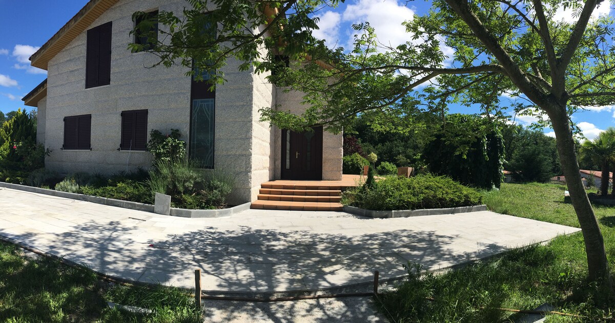 Tabhair do theaghlach chuig an lóistín iontach seo inar féidir leat taitneamh a bhaint as fanacht an - chiúin i suíomh tuaithe. Villa teirmeach is ea Baños de Molgas, tá abhainn álainn agus limistéir ghlasa an - fhairsing ann. Tá sé 30 km ón bpríomhchathair Ourense agus gar don Ribeira Sacra, Allariz agus Celanova . Má theastaíonn tréimhse fhada uait, inis dom chun an praghas a choigeartú. Mar gheall ar mhéid agus éascaíocht na páirceála tá sé oiriúnach d'fhostaithe easáitithe freisin. Tá garáiste ,téamh agus Wi - Fi againn.