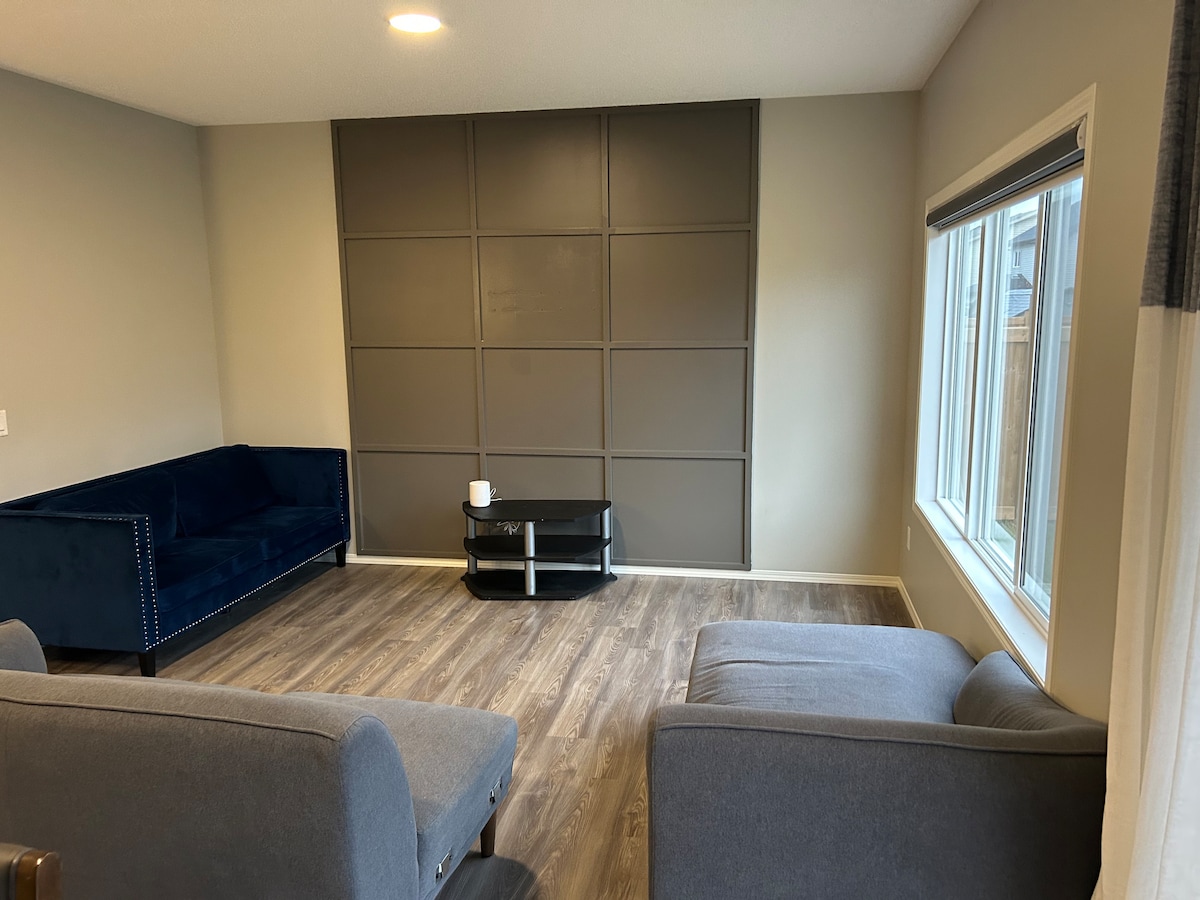 Enjoy a memorable visit when you stay in this unique place. This cozy 1-bedroom basement suite was built in September 2024. It includes 1 spacious beautiful bedroom with queen-size bed, bed equipped with a premium mattress, a completely functional kitchen with brand-new stainless-steel appliances, a beautiful dining area, a full spacious bathroom build with accessibility in mind, a laundry room, a spacious living room area with free TV channels & Netflix and a fast optic fiber internet.